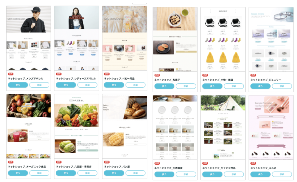 4.ネットショップの開設時に使えるテンプレートを12点リリース