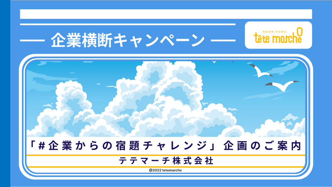 企業向けSNSマーケティング支援を中心としたビジネス展開をする「テテマーチ株式会社」(本社:目黒区、代表取締役:上田 大介)は、2022年8月17日(水)〜8月23日(火)の期間で【夏休みの宿題】をテーマにした企業合同「#企業からの宿題チャレンジ」キャンペーンを実施します。