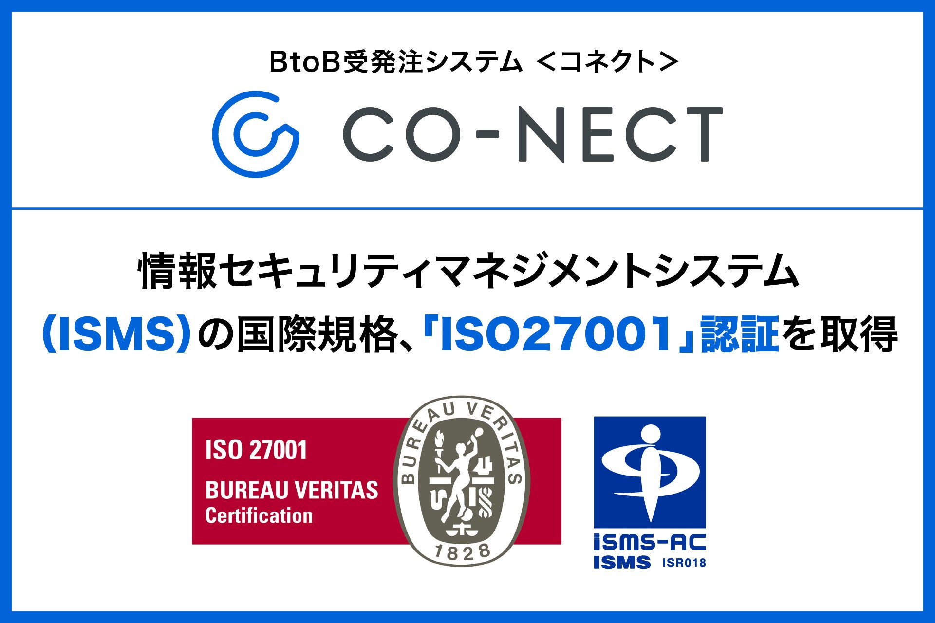 BtoB受発注システム「CO-NECT(コネクト)」、情報セキュリティマネジメントシステム(ISMS)の国際規格、「ISO27001」認証を取得