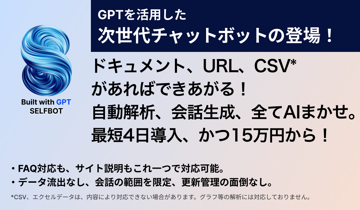 SELFがデータ学習とGPT連携を備えた、次世代チャットボットをオープン