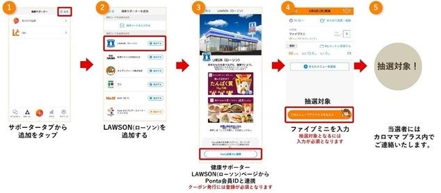 (※7):エントリーフォームは、キャンペーン開始後にファイブミニの入力が確認できた方にのみ、「カロママ プラス」アプリ上にお送りいたします。