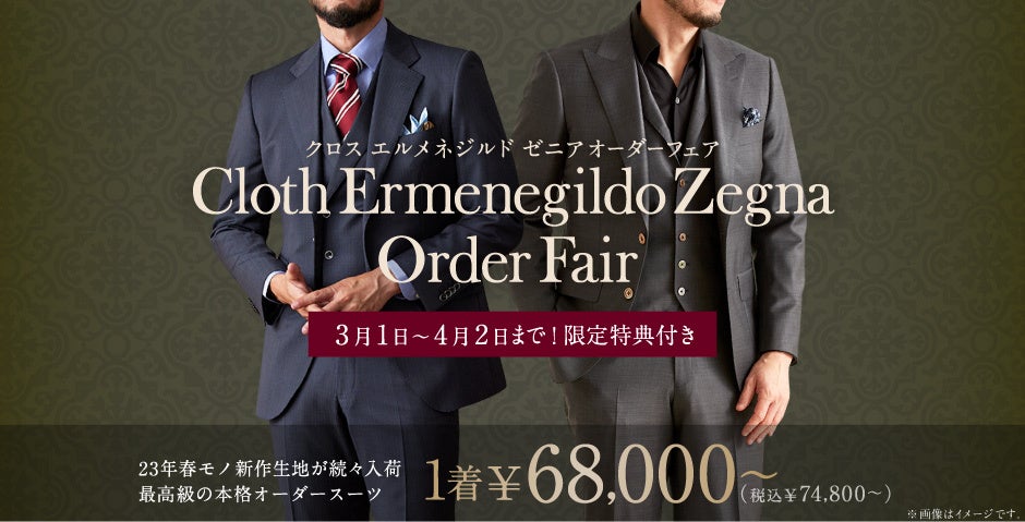 期間限定!豪華特典付きクロス エルメネジルド ゼニア オーダーフェア開催中 1着68,000円~(税込74,800円~)