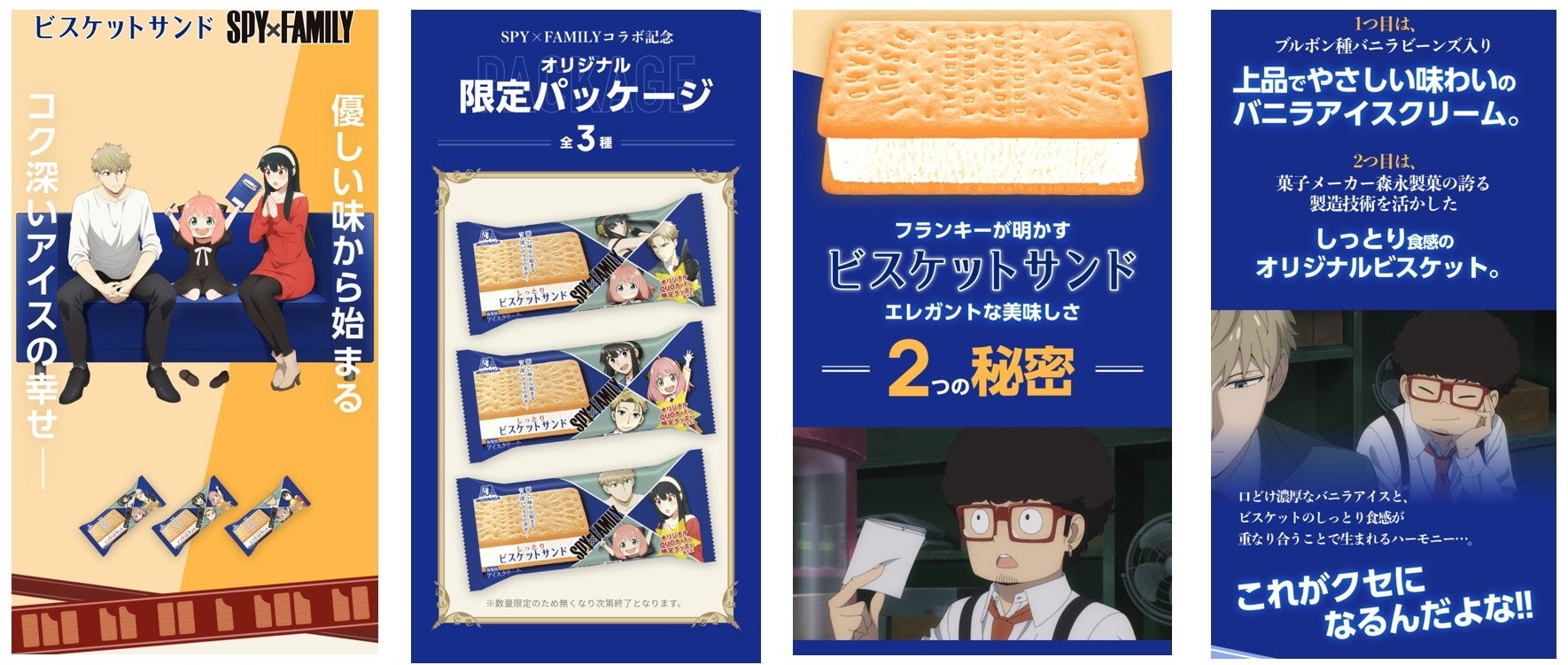森永製菓株式会社(東京都港区芝 代表取締役社長・太田 栄二郎)は、しっとりしたビスケットでシンプルリッチなバニラを挟んだアイスクリーム「ビスケットサンド」と、10月よりアニメ第2クールの放送が開始した「SPY×FAMILY」とのコラボキャンペーンを、2022年10月10日(月・祝)より実施します。