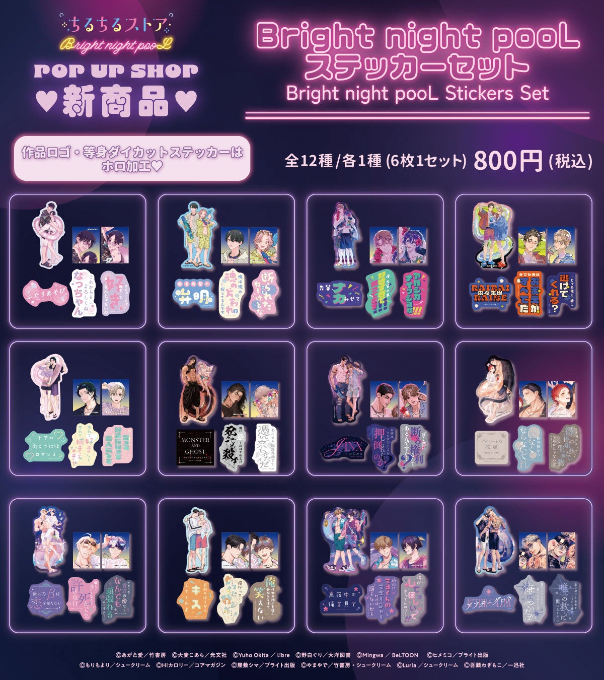 Bright night pooLステッカーセット(全12種、各6枚1セット)
