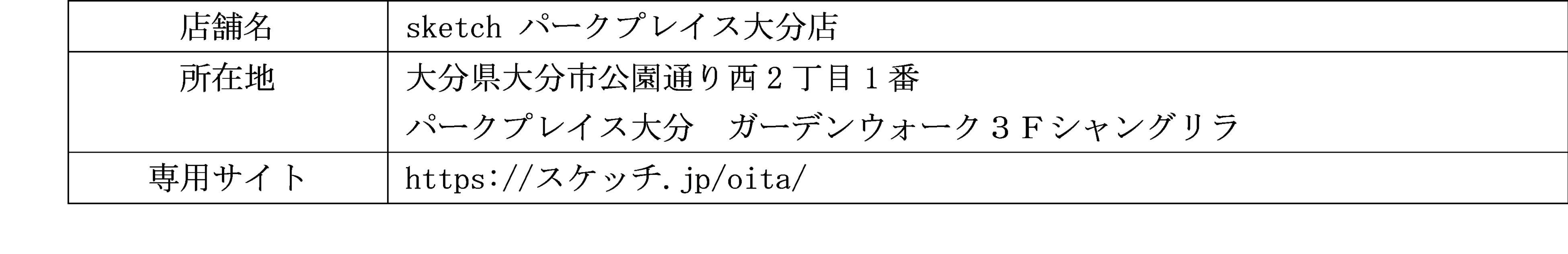 | 店舗名 | sketch パークプレイス大分店 |
