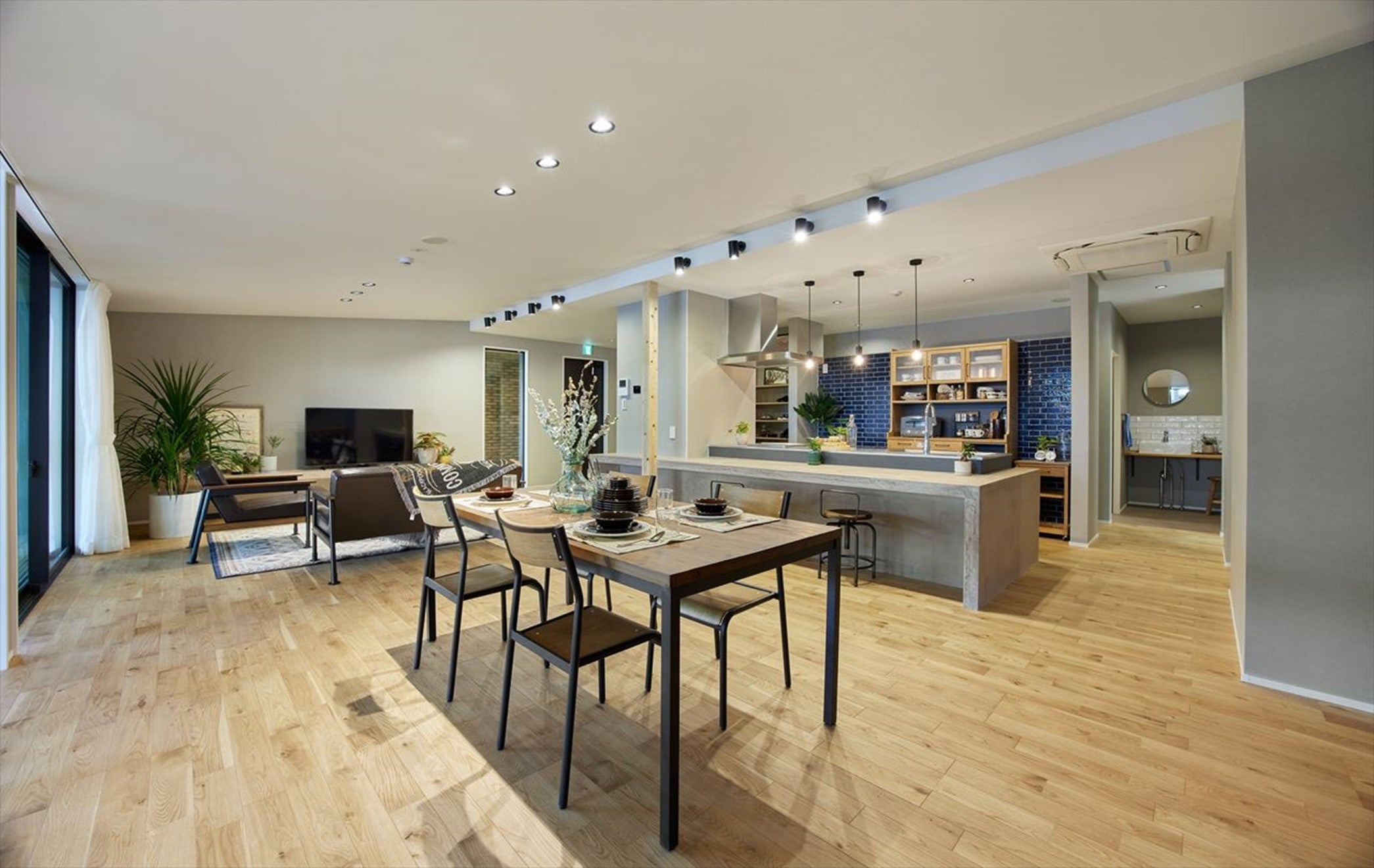 当モデルハウスのデザインコンセプトは、世界最大規模の家具見本市「ミラノサローネ」を参考に、ベースカラーはアースカラーを配色。外壁にはアクセントとしてブリックタイルを設え、居室のインテリアとしてグリーンや植物を取り入れるなど、トレンドを意識した「インダストリアルデザイン」を採用しております。