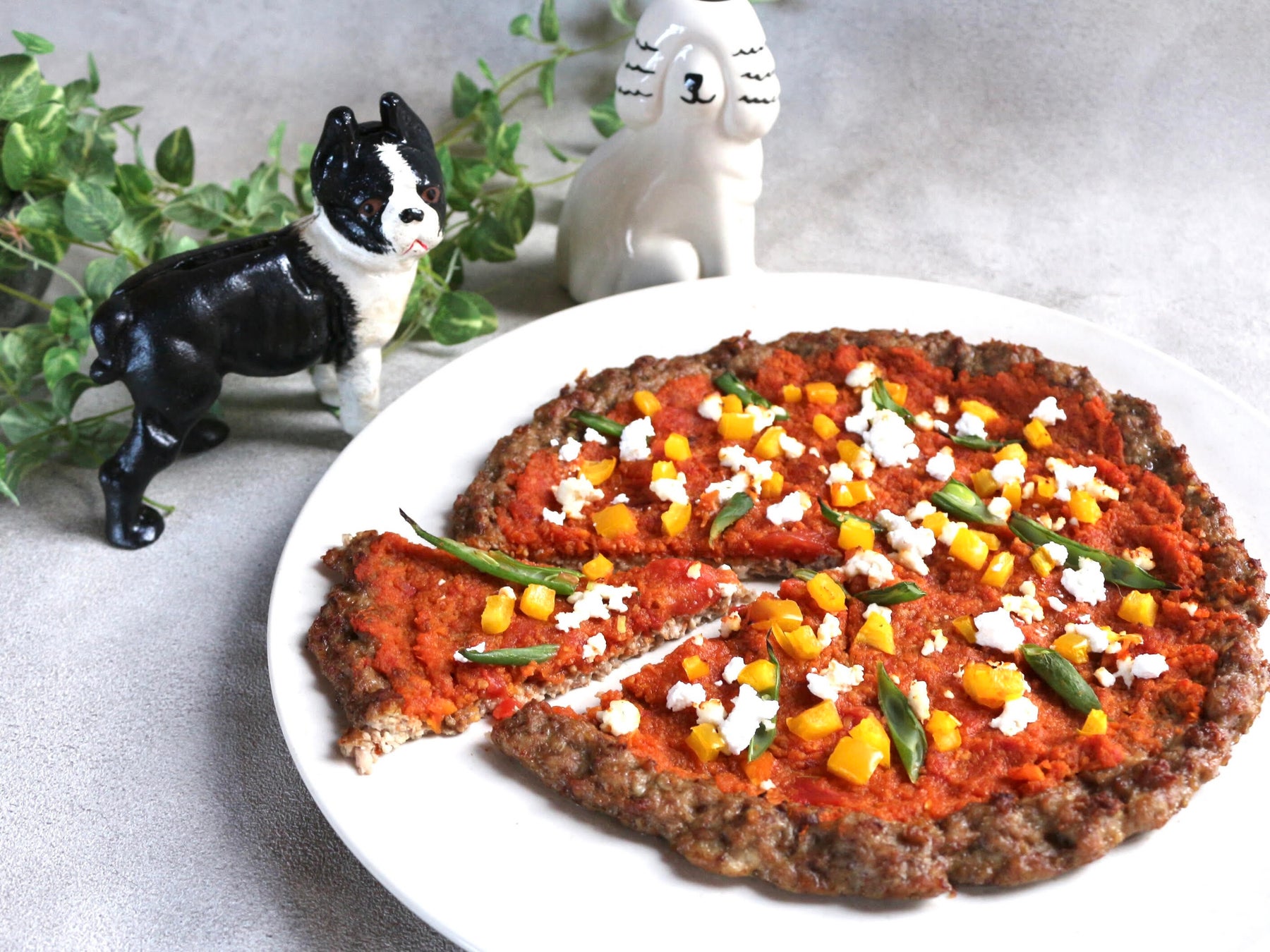お肉でできた見た目も楽しいドッグ用ピザ。チキン味とポーク味の2種類をご用意。