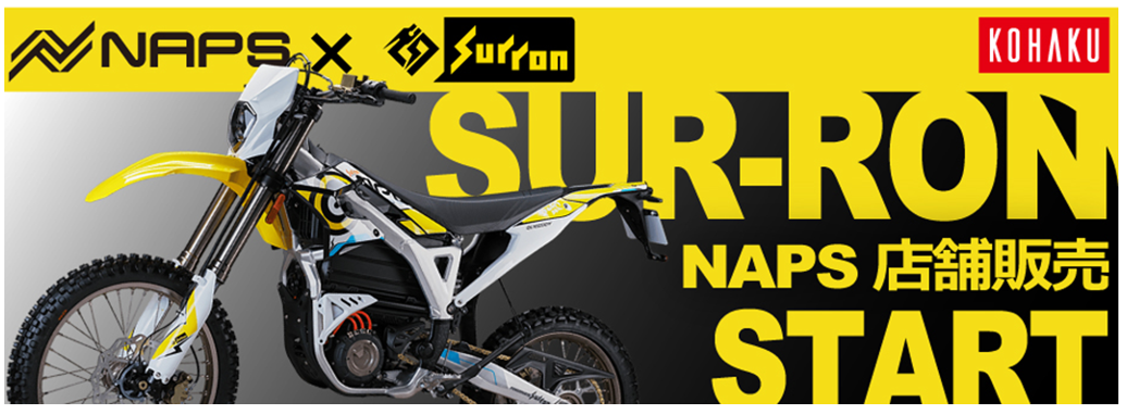 オートバイ用品店の小売・開発を行う株式会社ナップス(本社:神奈川県横浜市、代表取締役:望月 真裕 以下、「NAPS」)は、世界で最も人気の高い電動モトクロッサー『SUR-RON』の取り扱いをNAPSの6店舗で開始する事になりました。取扱店舗:横浜店、埼玉店、浜松店、春日井店、京都八幡店、ららぽーと立川立飛店(※ららぽーと立川立飛店は展示のみとなります)