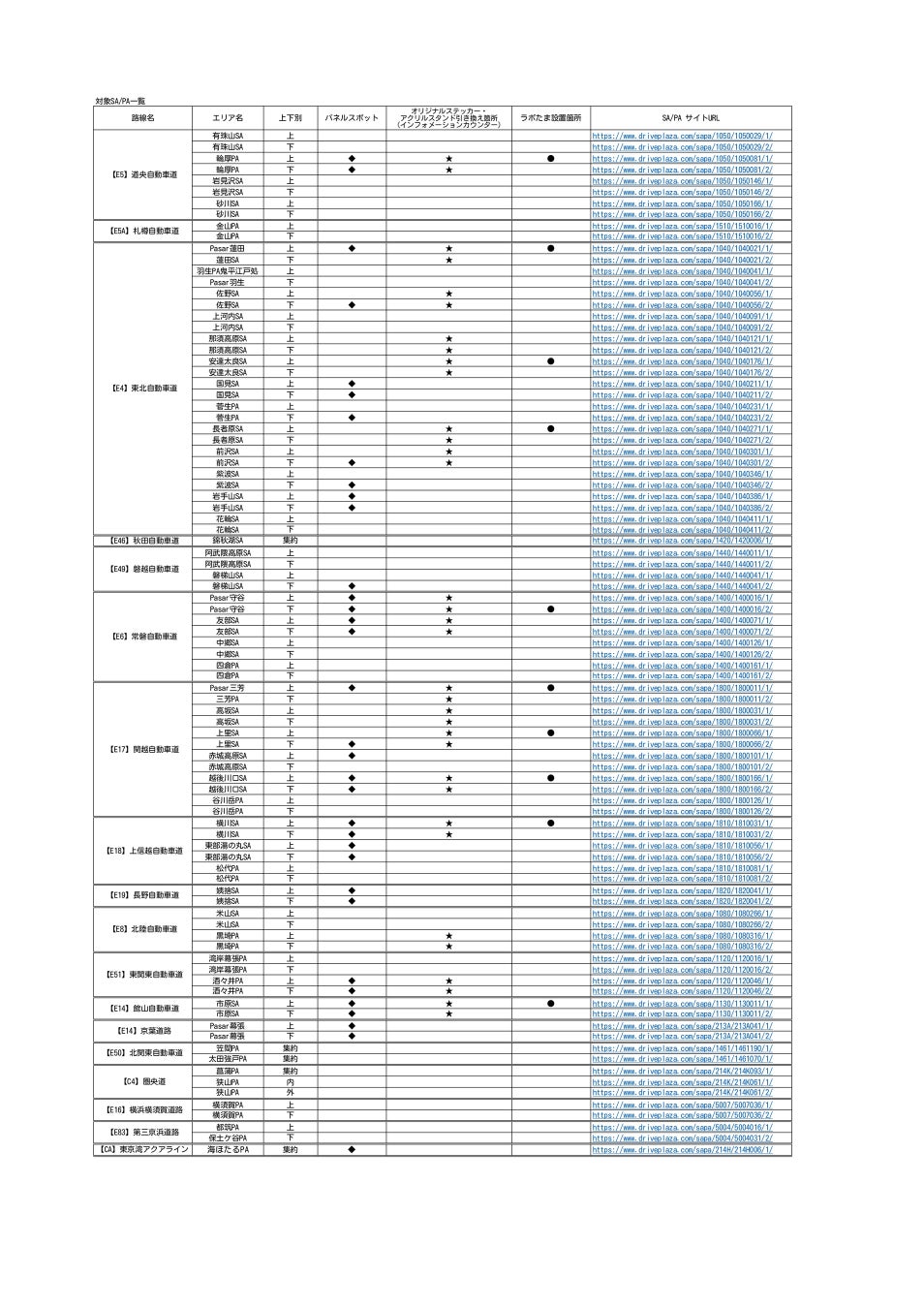 NEXCO東日本管内のSA・PA 91カ所(別紙1のとおり)