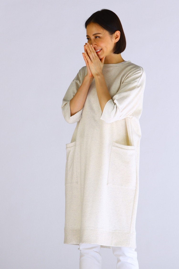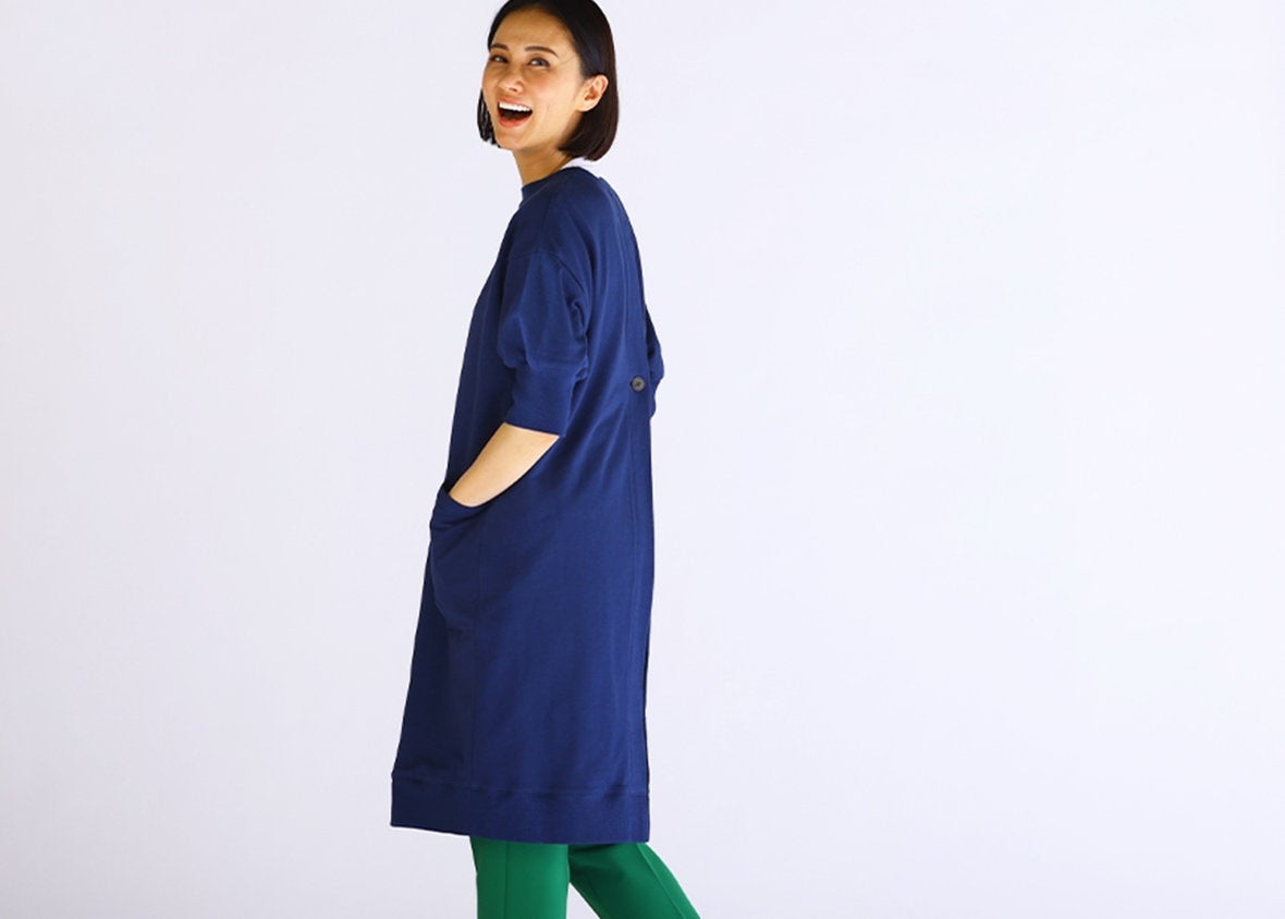 お家での作業着だけでなく、急な来客やちょっとそこまでのワンマイルウエアとしても、洋服の上から包みこむだけでスタイリッシュなスタイルが簡単に完成します。