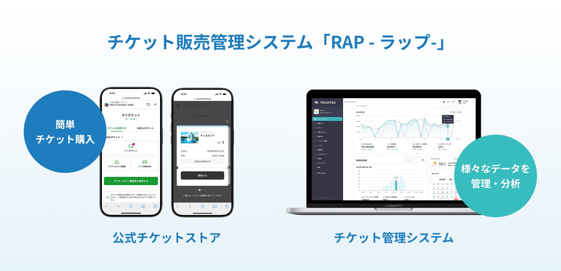 株式会社テコテック(本社:東京都渋谷区、代表取締役:釣崎宏)は、株式会社ネスタリゾート神戸(本社:兵庫県三木市、代表取締役:田中淳)が運営する「ネスタリゾート神戸」にて、2025年7月1日(火)よりオープンするプール施設内に設置される有料席の座席指定予約へ、快適な施設運営を支援するエンタメ施設向けチケット販売管理システム『RAP -ラップ-』の導入及びカスタマイズ開発いたしましたのでお知らせします。