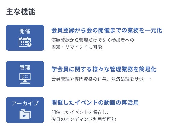 そうした中オンライン配信業務をサポートする「Medical Note Conference」に関心をいただき、この度の導入が決定。配信した動画をオンデマンドで利活用できる機能によって、開催後の見逃しおよびフォローアップの動画配信を予定されています。