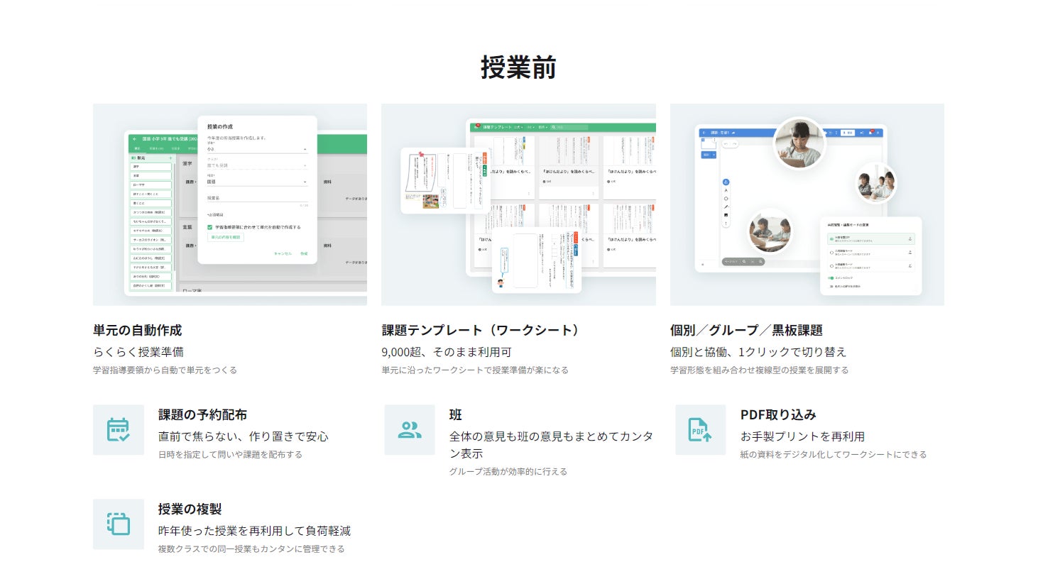 2.授業シーン別の便利な機能がひと目でわかる