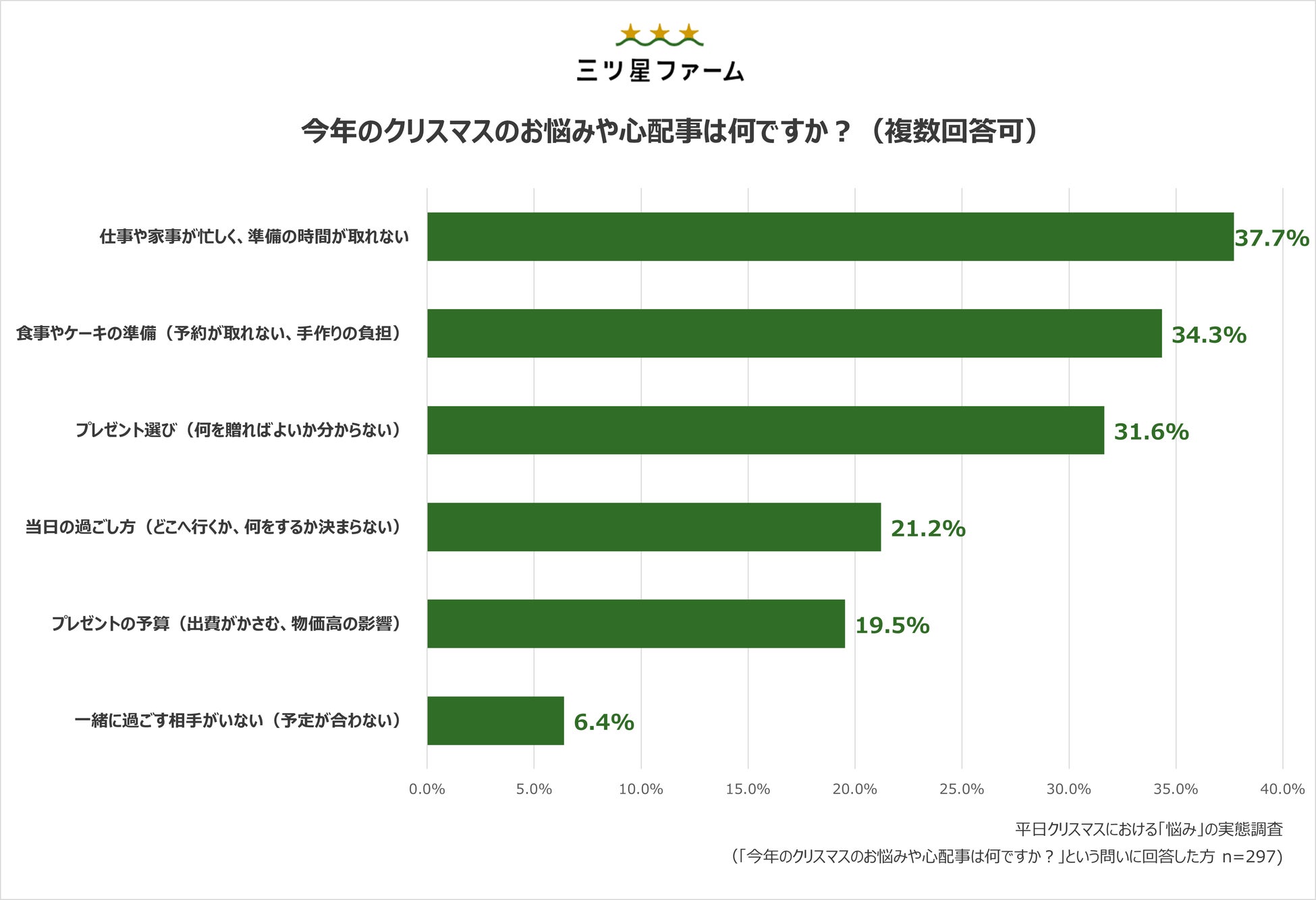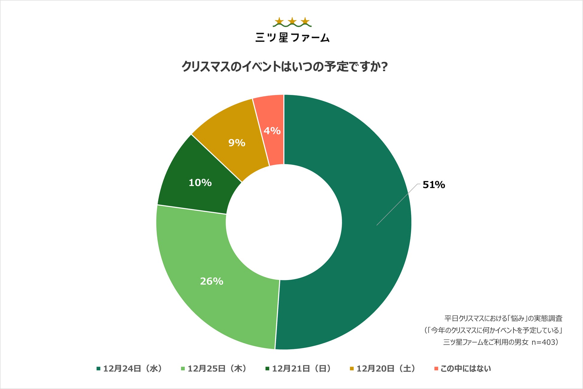 今回、クリスマスにイベントを予定している三ツ星ファームのお客様403人を対象にアンケートを実施した結果、2025年のクリスマスならではの課題が明らかになりました。