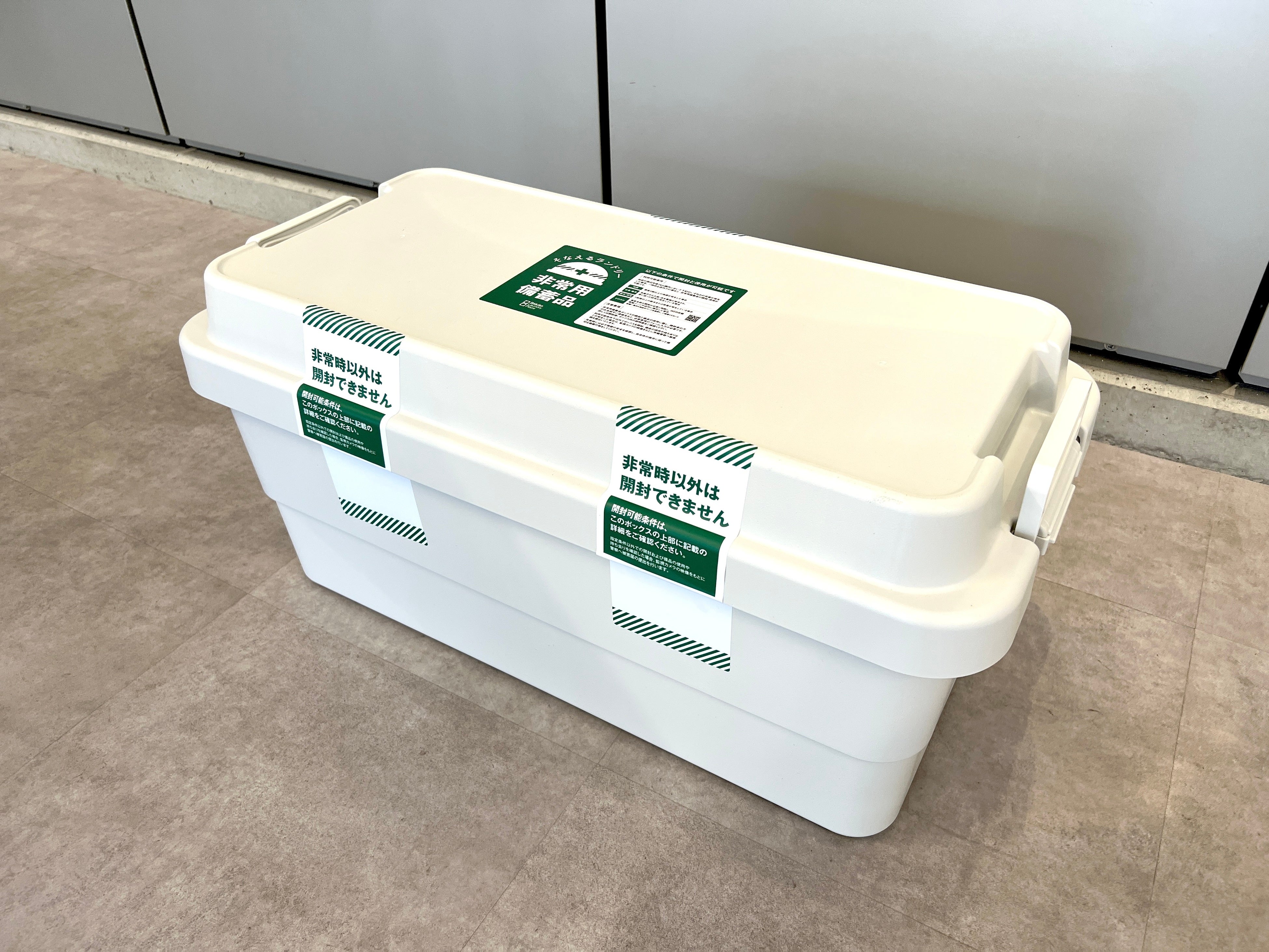 ▲備蓄品ボックスと備蓄品の一部