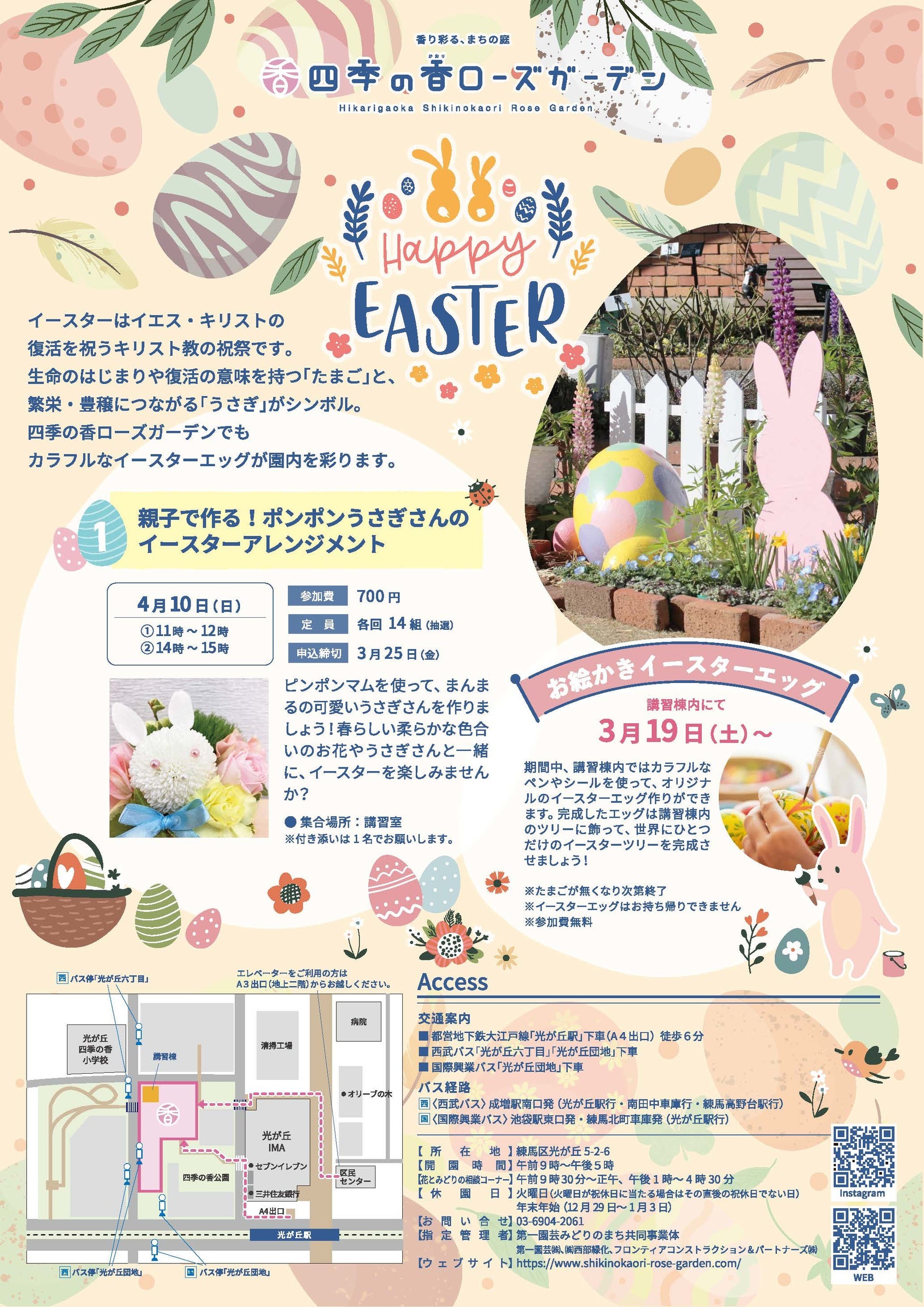 練馬区立 四季の香ローズガーデンにて「ハッピーイースターフェア」開催/オリジナルのイースターエッグづくりやうさぎのフラワーアレンジメント体験を実施
