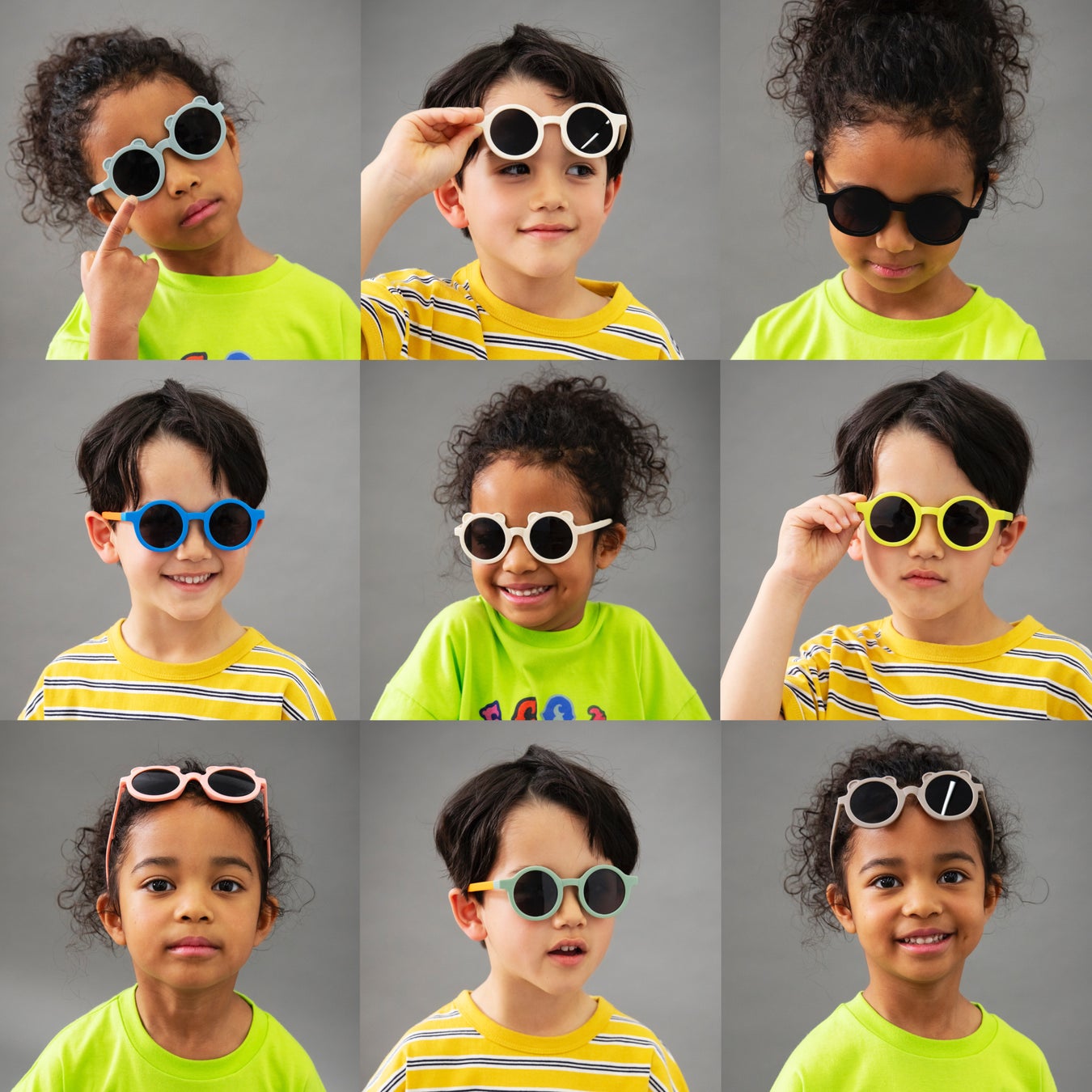 こどもの目を紫外線からしっかり守る、UVカット99%以上の子ども用サングラスです。折り畳み式でコンパクトに収納できるため、持ち運びにも便利!お出かけや旅行時に最適なアイテムです。