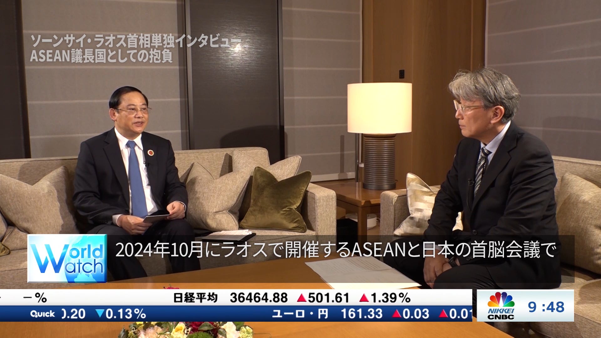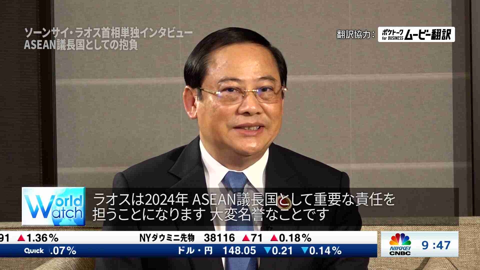 日本と東南アジア諸国連合(ASEAN)の友好協力50周年を記念した特別首脳会議が2023年12月、都内で開催されました。日経CNBCはこの会議に出席するために来日したラオスのソーンサイ・シーパンドン首相にインタビューし、今年のASEAN議長国として果たす役割や日本との関係強化など、経済・産業分野を中心に話を聞きました。