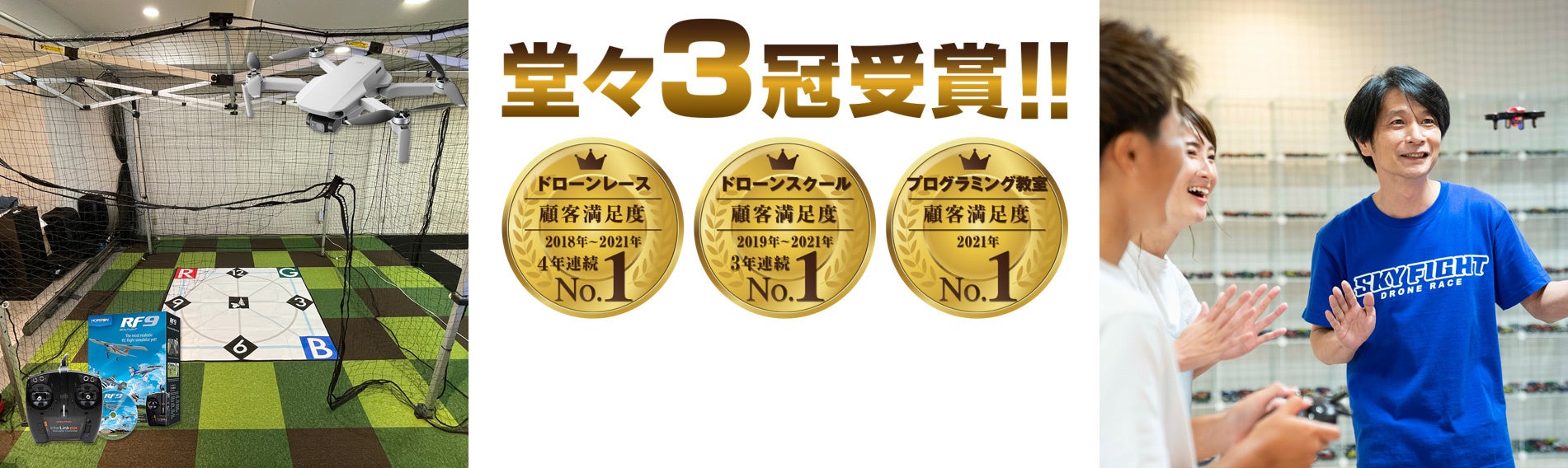スカイファイト福岡ジアウトレット堂々オープン!!ドローン操縦のスクールはもちろんドローンを活用したプログラミング教室など人気コンテンツが満載!