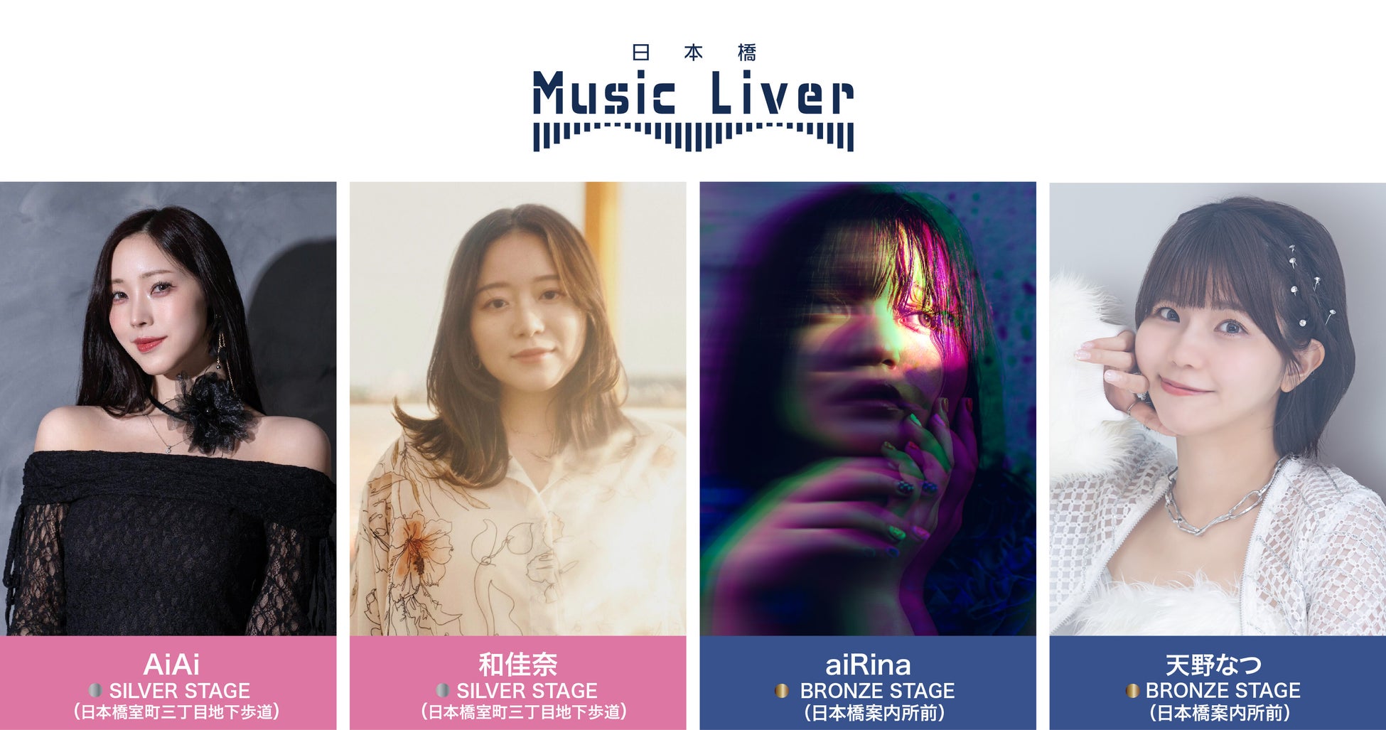 SILVER STAGE(日本橋室町三丁目地下歩道)にはTikTokフォロワー数6万人超え、路上ライブを中心に活動するAiAiと、幼い頃から幅広くクラシック音楽に触れて培った知識や表現力を武器に一度聴いたら忘れられない癒しボイスで人々を魅了する和佳奈が登場。