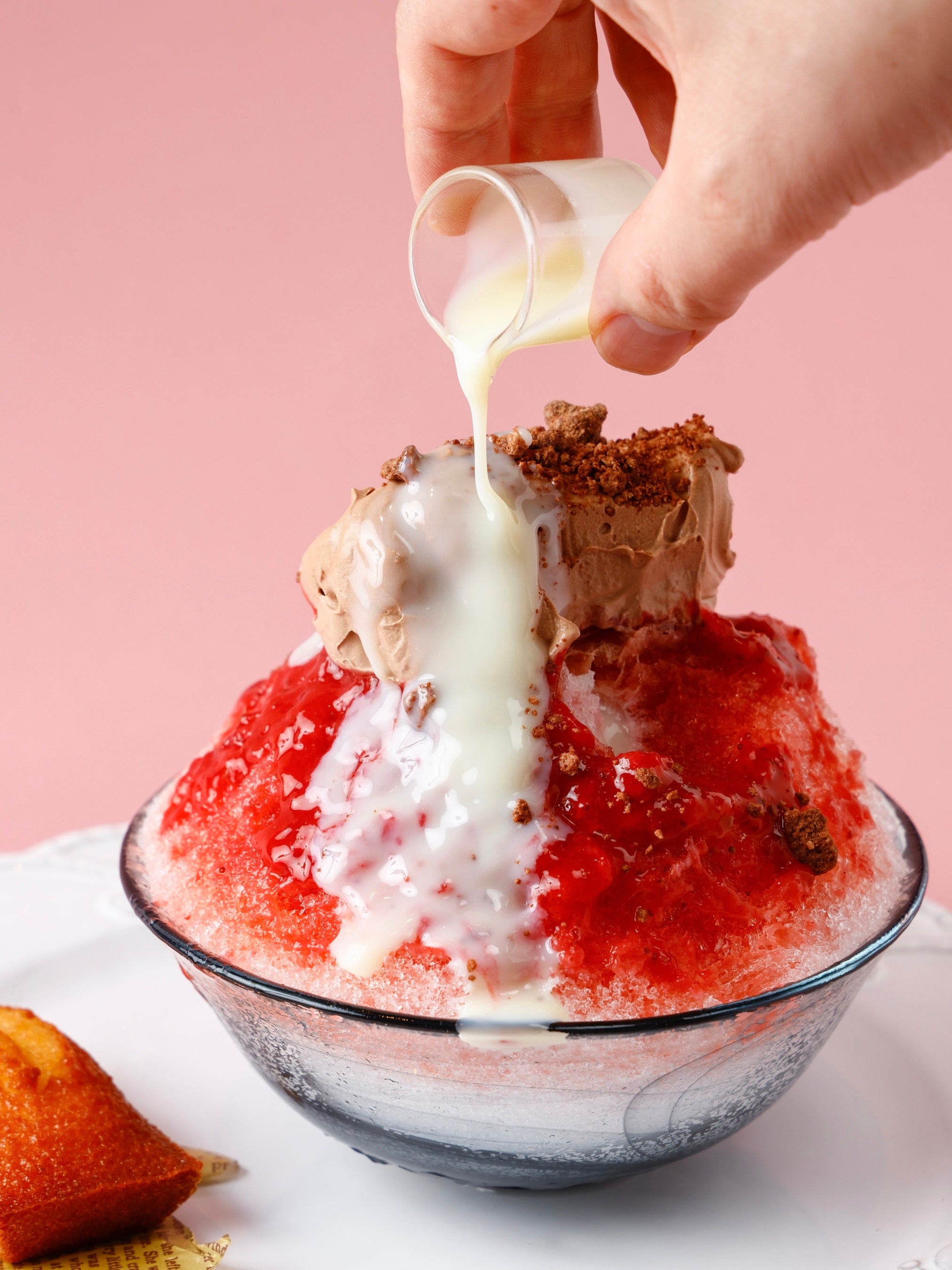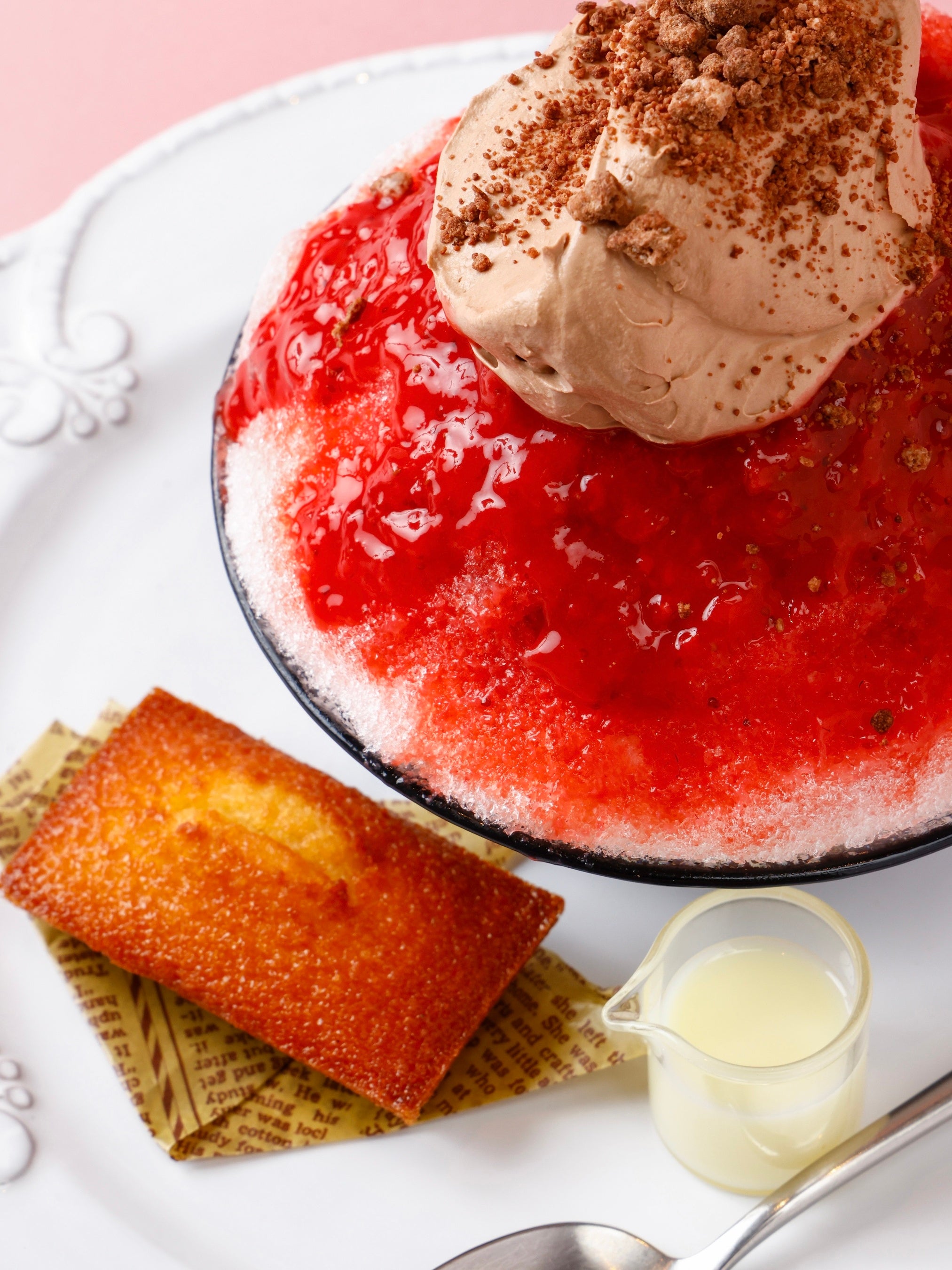 濃厚イチゴミルクかき氷 ~フィナンシェ付き 1,900円(税込)