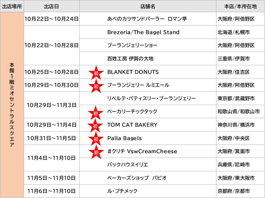 【初出店ベーカリー6店舗】