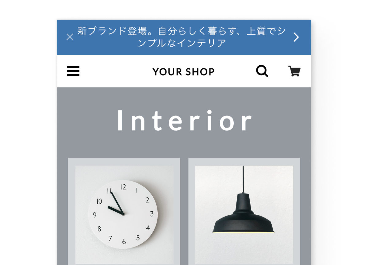 また、お知らせバナーに表示する内容やデザインは自由にカスタマイズすることが可能です。