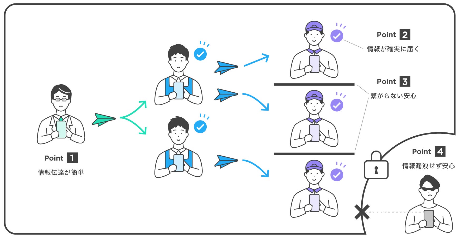 ここ数年、社員間でのコミュニケーションツールやグループウェアの普及が進んでいます。一方で、社員とパート/アルバイト間の連絡手段は未整備で、未だ紙媒体や無料チャットツールが使用されています。紙媒体を使用する場合は連絡業務の負荷が重く、無料チャットツールの使用は誤送信や誤招待による情報漏洩や従業員間トラブルなどのシャドーITと呼ばれる問題に発展するリスクがあります。