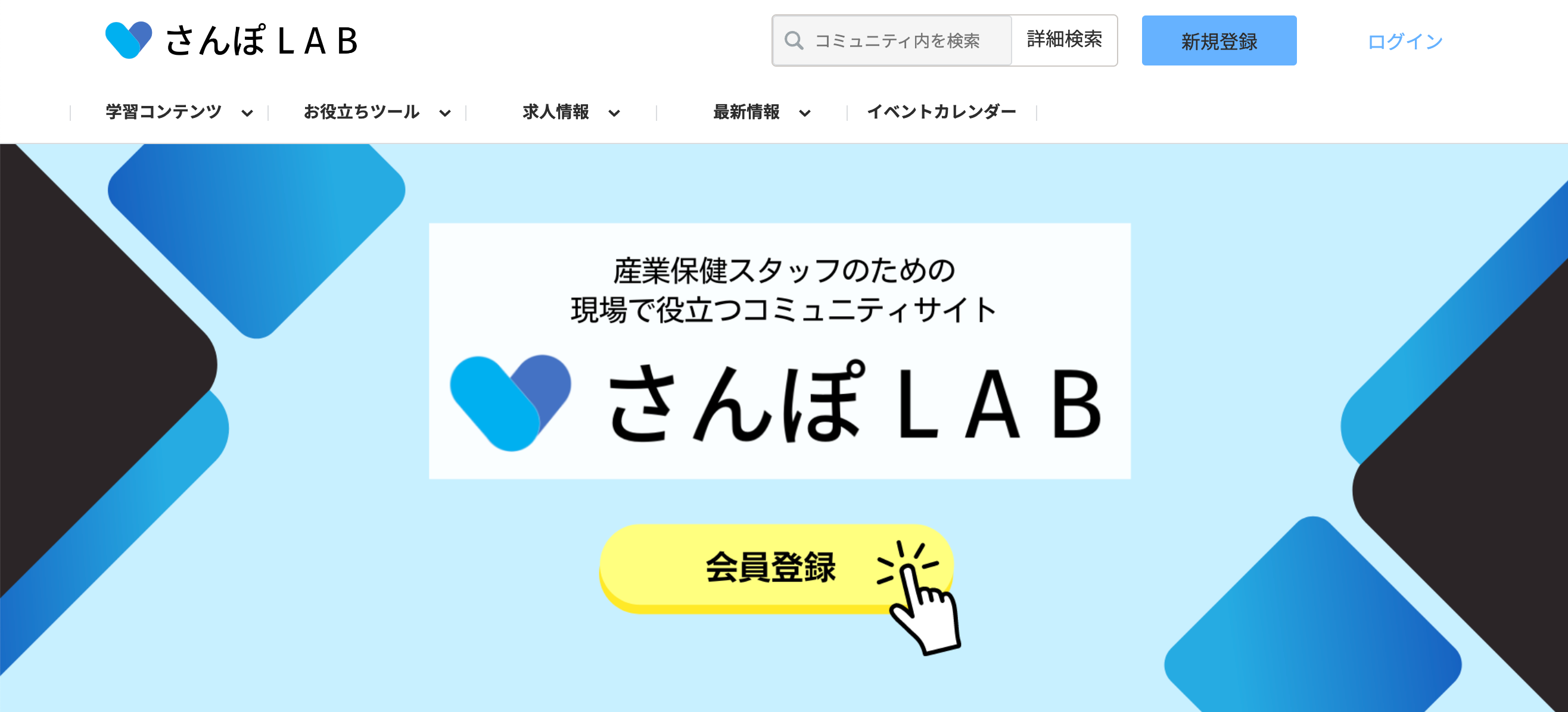 産業保健スタッフ同士の横のつながりを創出し、日常業務でお困りになった時にすぐ駆け込むことができる場所となっており、業界の最新情報、豊富な学習コンテンツを提供しております。