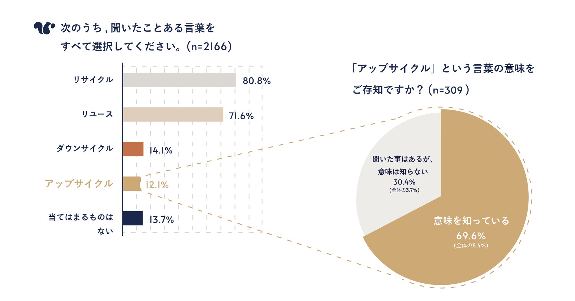 アップサイクルという言葉を聞いたことがある人は12.1%、意味までわかる人は8.4%