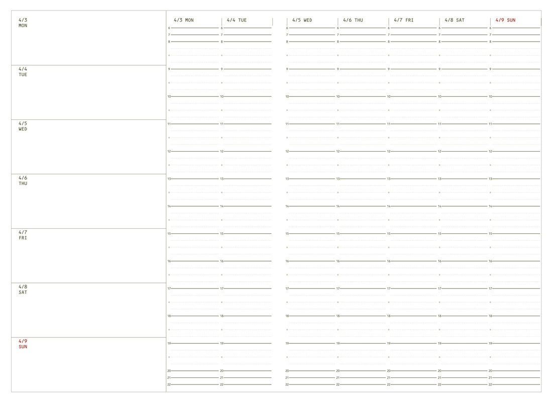 特長:1冊の手帳だが中心部で断裁されている珍しい形の手帳。開くと上下2段にわかれるため別々に動かす事が可能。その特徴を活かし上段で月間予定や週間タスク、下段で一週間分の会議予定やアポイントをバーティカル(縦軸)の時間軸で確認できます(ウィークリー&マンスリー版)。デイリー&マンスリー版は1日1ページタイプ。日々の予定をしっかり書きたい方の需要に応えています。「ウィークリー&マンスリー版」「デイリー&マンスリー版」ともに工程管理や記録管理に役立つガントチャートページを設けています。