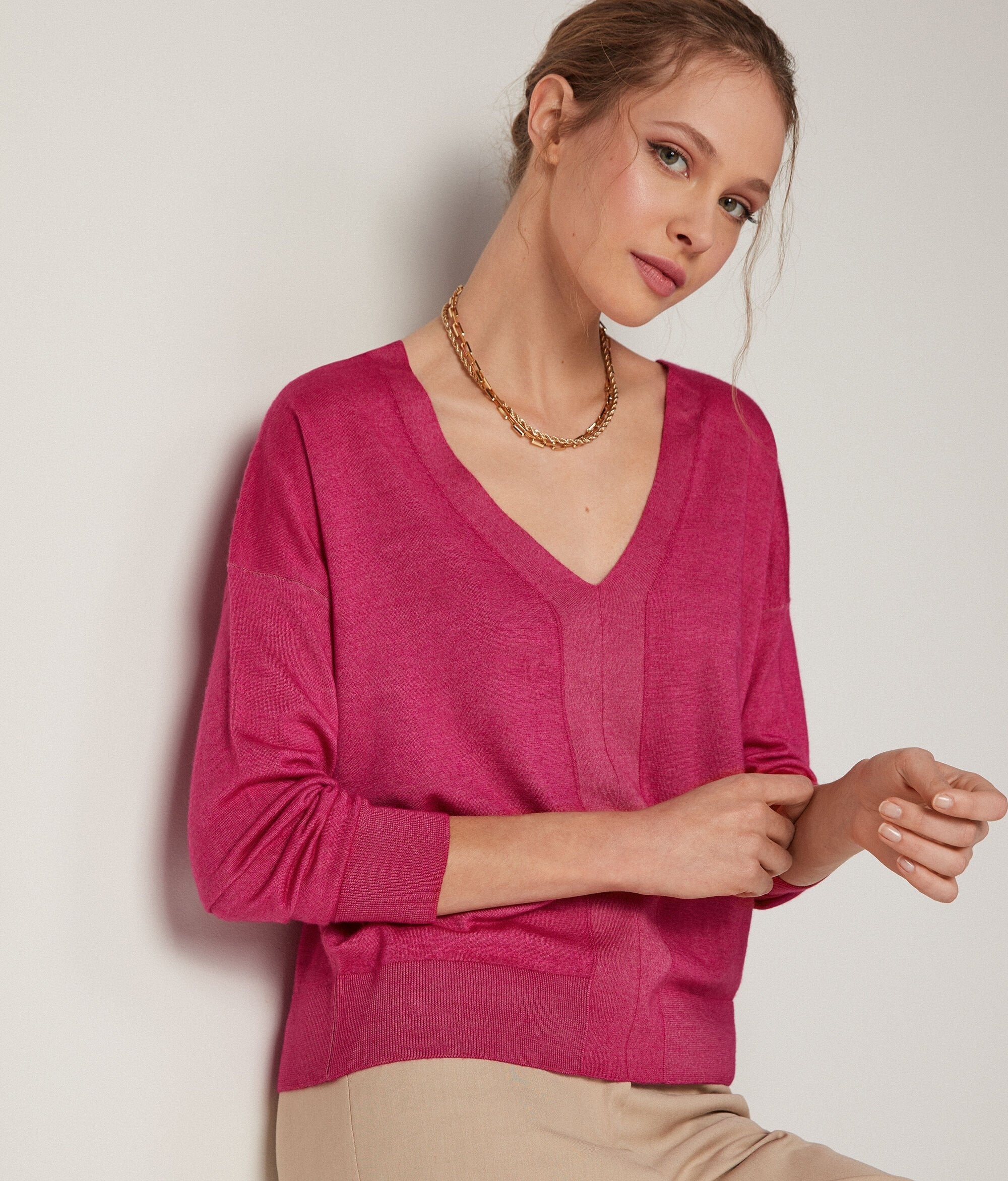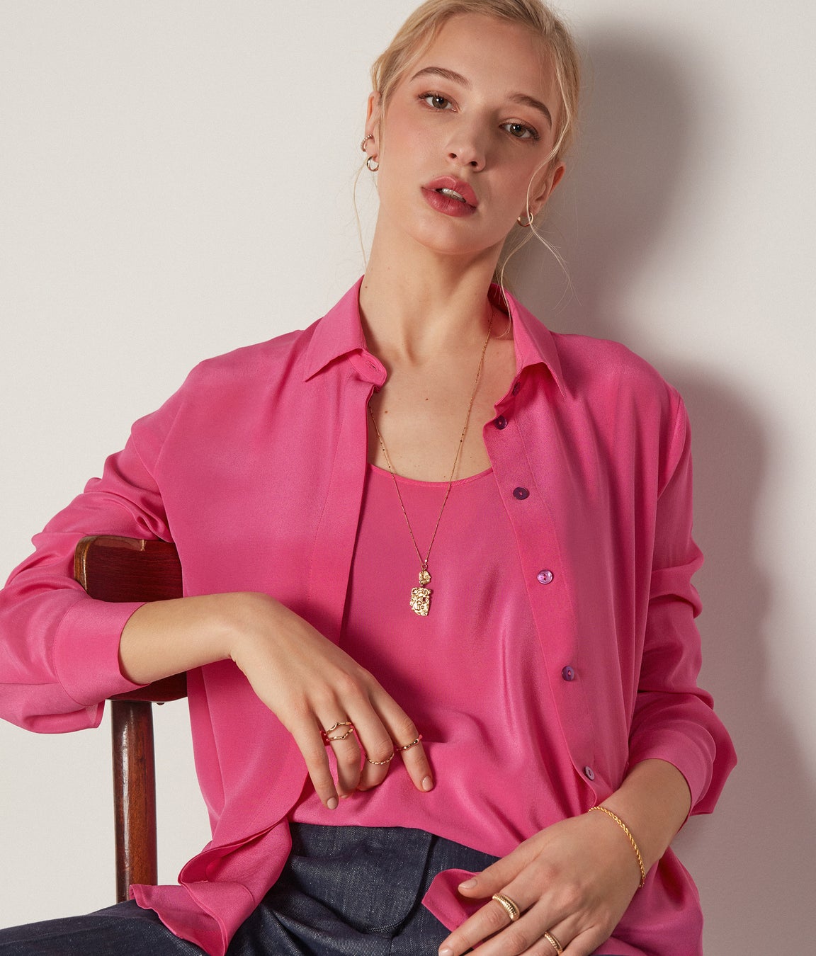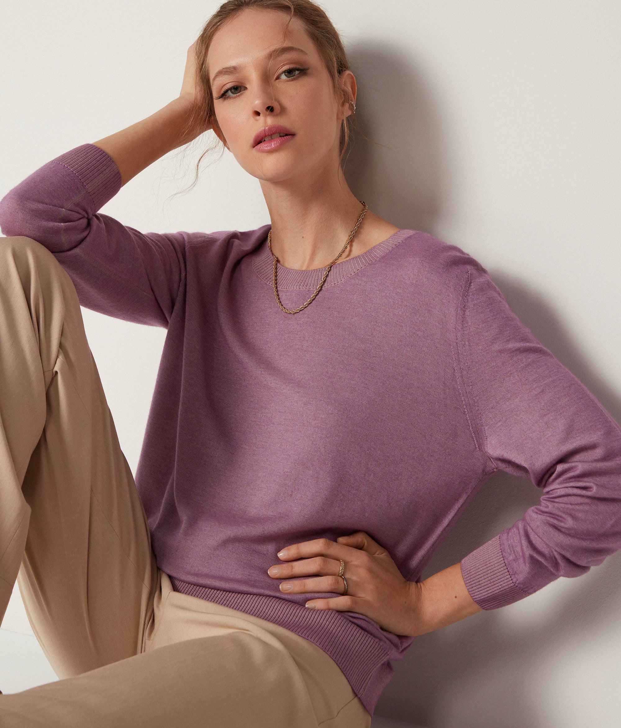 日本の桜の花の美しさと儚さを表現したかのようなピンクの濃淡のカラーヴァリエーションのウルトラファインカシミヤのセーターは、Vネックやラウンドネックなどベーシックなスタイルが揃い、春に満開に咲き誇る花々をモチーフにしたシルクブラウスやダウンベストなど、ファッションに春を楽しむアイテムを数多く提案しています。