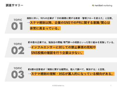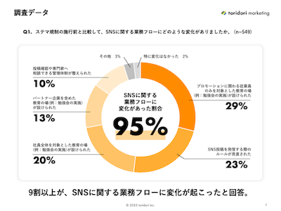 【調査レポート】インフルエンサーマーケティング企業toridoriが、ステルスマーケティングの法規制に関する企業の反応を徹底調査!法規制後、95%の企業で“SNS業務に関する意識”が大きく変化!