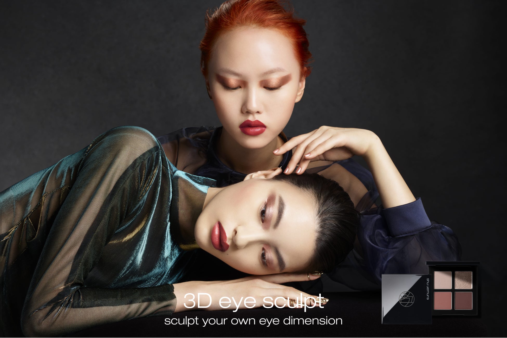 ハイライトを演出する“フラット アルミニウム”とシャドーイングを演出する“フラット ブラック 酸化鉄”の新しい2種類のパールを配合。ハイライトとシャドーイングのコントラストが一層際立ち、ひと塗りで簡単に目元の輪郭を際立てる奥行きを描き出します。