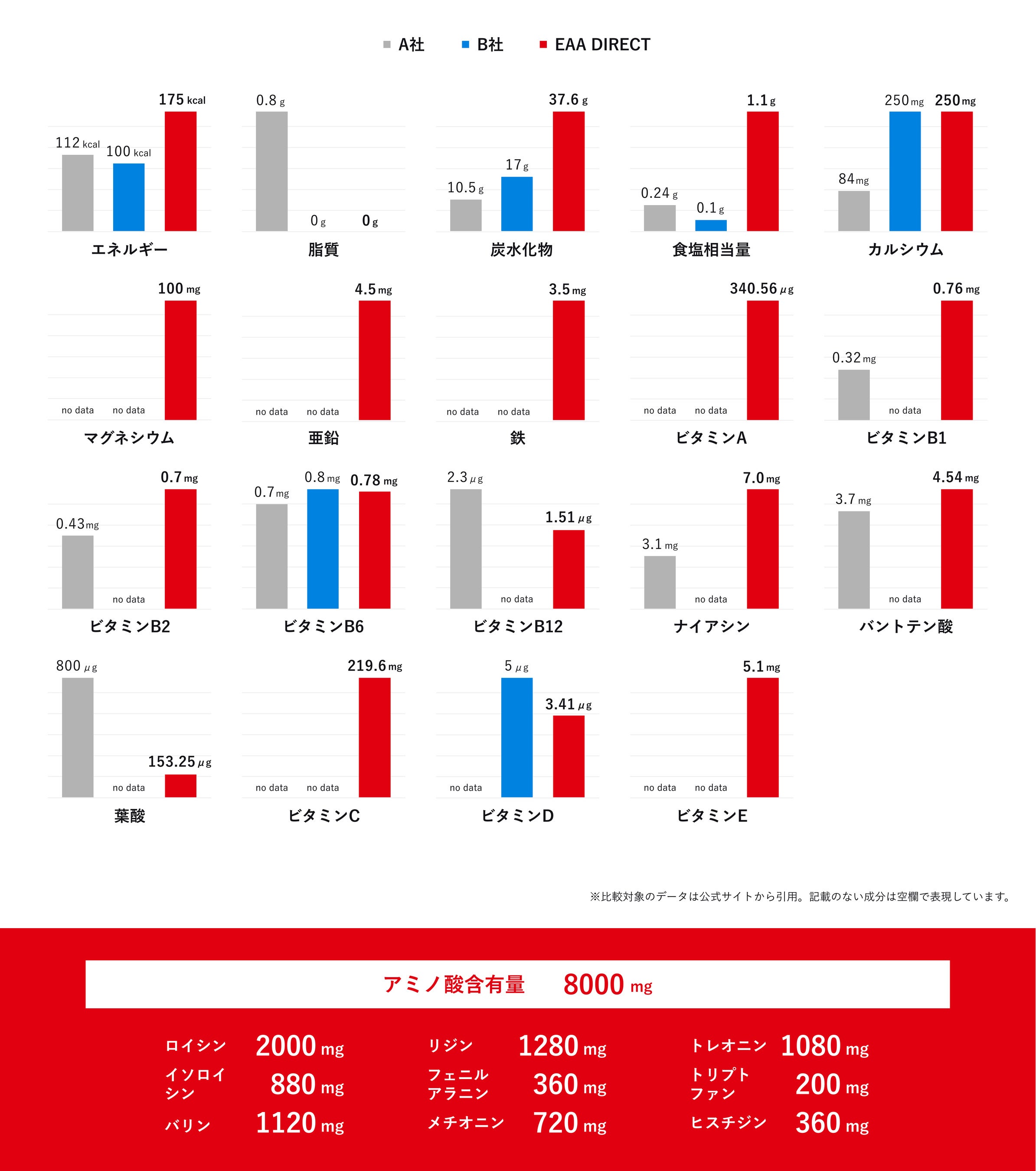 本製品はEAAと呼ばれる筋肉を効率的に作る必須アミノ酸を含んでおり、摂取後30分程度で体内に吸収されます。これは一般的なプロテインの4倍のスピードで、運動中に血中のアミノ酸が多い状態で運動をすることでパフォーマンスが維持されます。運動の直前や運動中に摂取することで十分に効果を期待できる製品です。