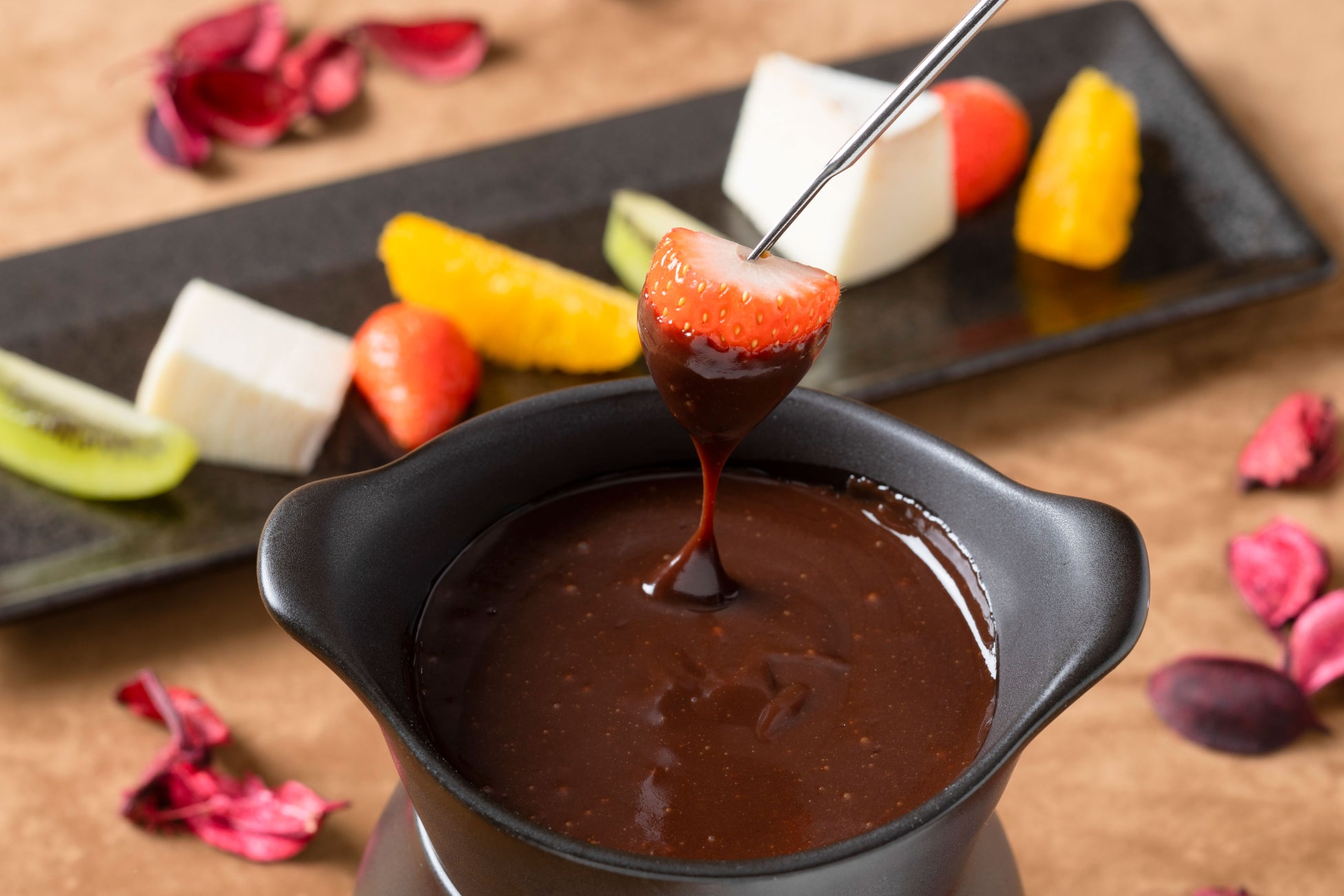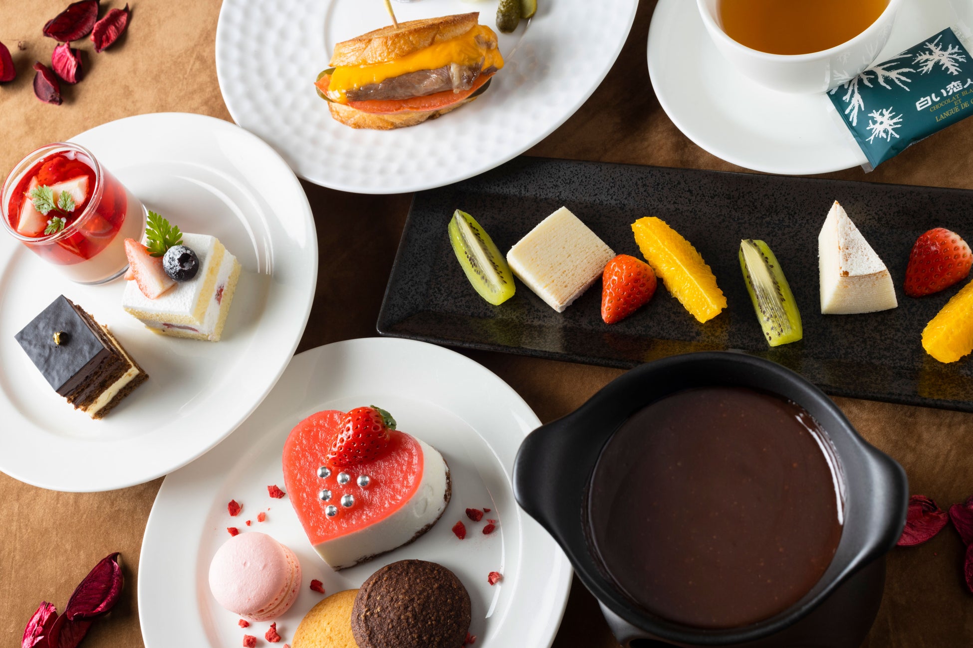 白い恋人パークでしか味わえない「ミルクチョコレートフォンデュ」やニューオータニ定番スイーツ「ガトーオペラ」やイチゴをモチーフにしたスイーツが登場