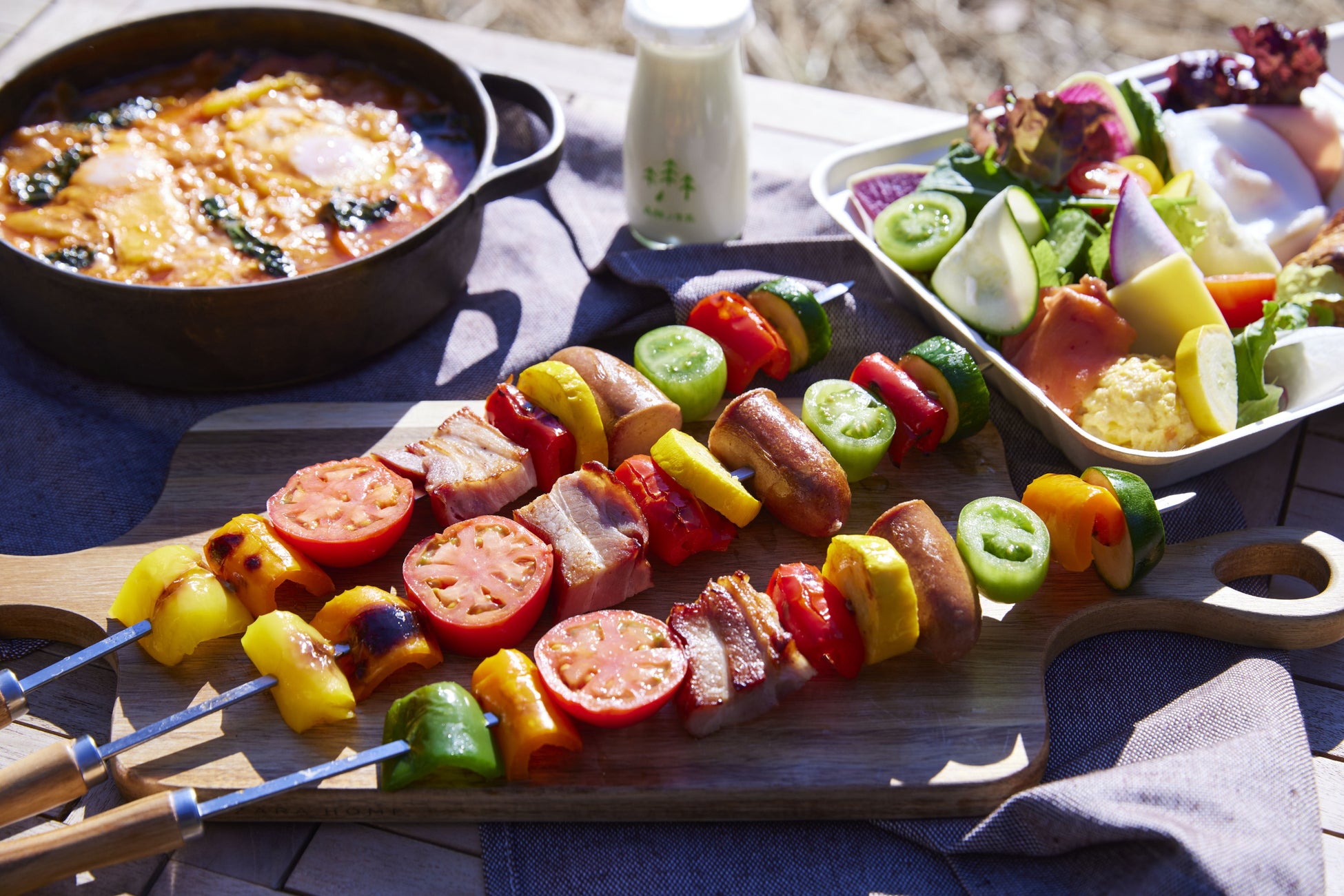 朝食では自分たちが収穫した野菜を使って楽しむ「ベジBBQ」が新登場。野菜をベーコンやソーセージと一緒に串に刺し、その場で焼き上げて味わえます。また、10種類・250g以上の野菜を使用したアクアコッタ(*)付きモーニングボックスも提供。ランチでは本プランのゲスト限定で16種類・600g以上の野菜を摂取する「たっぷり野菜の石窯ピッツァづくり」を体験できます。