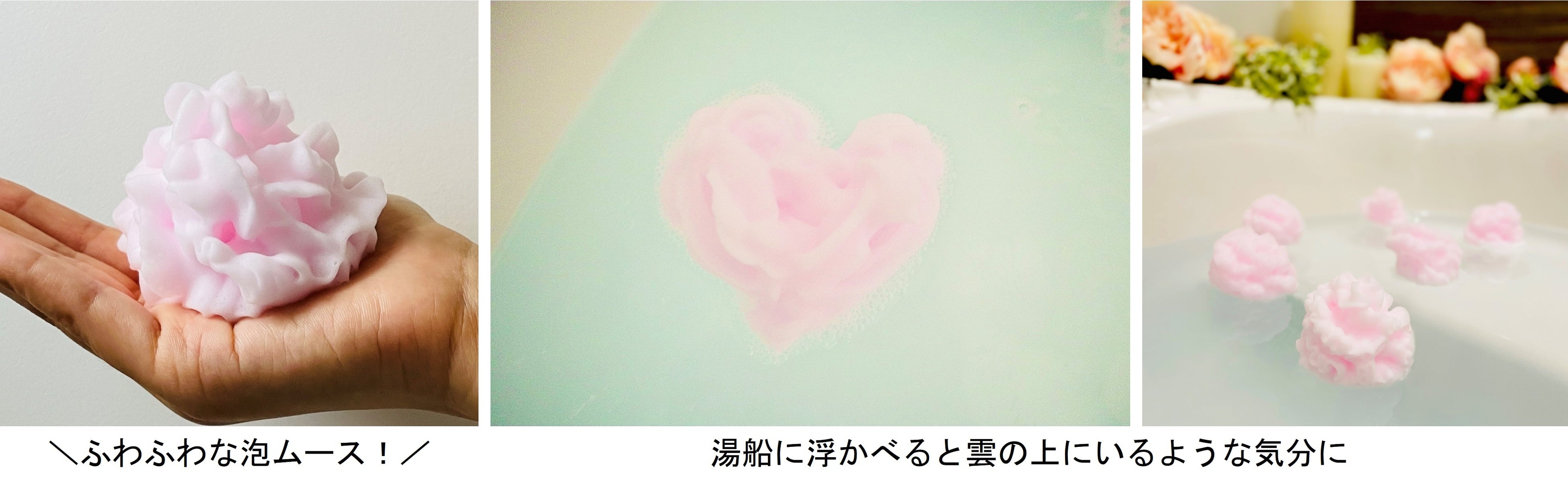 湯船に浮かべ、華やかな香りに包まれる新感覚のアロマムース入浴料「バスハピネス アロマムース ロマンティックガーデンの香り」10月13日より数量限定発売