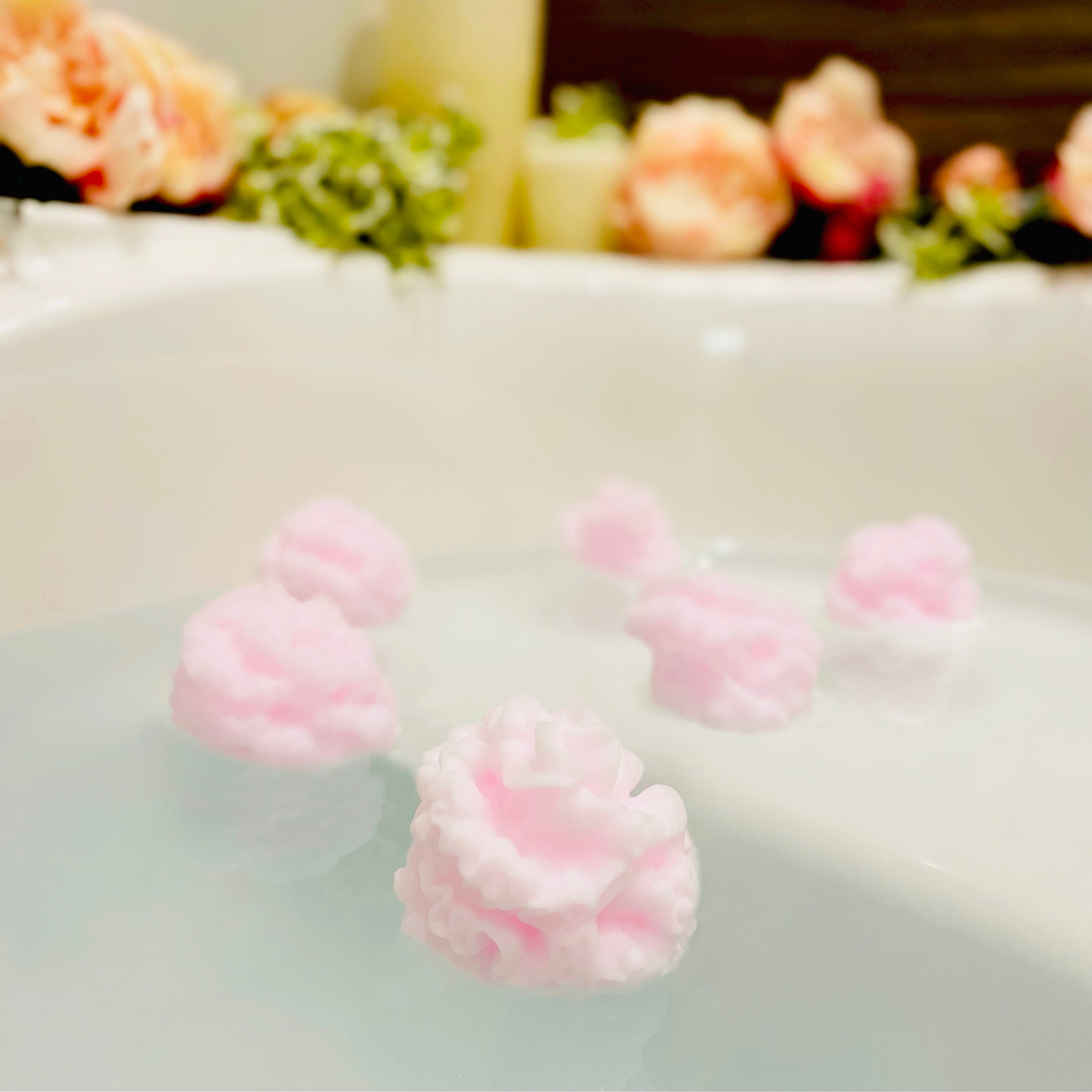 泡が湯船に漂い、溶けるまで香りをお楽しみいただけます。