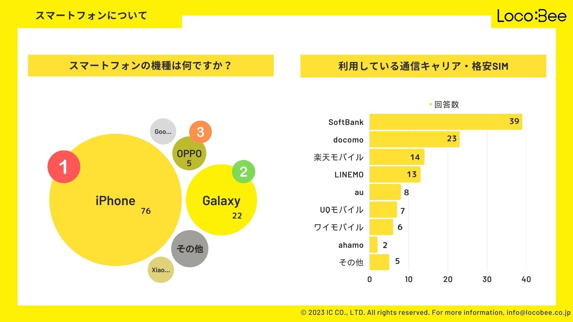 通信キャリアについては、格安SIMの割合が高くなるのかと思っていましたが、SoftBankとdocomoが1位2位となりました。