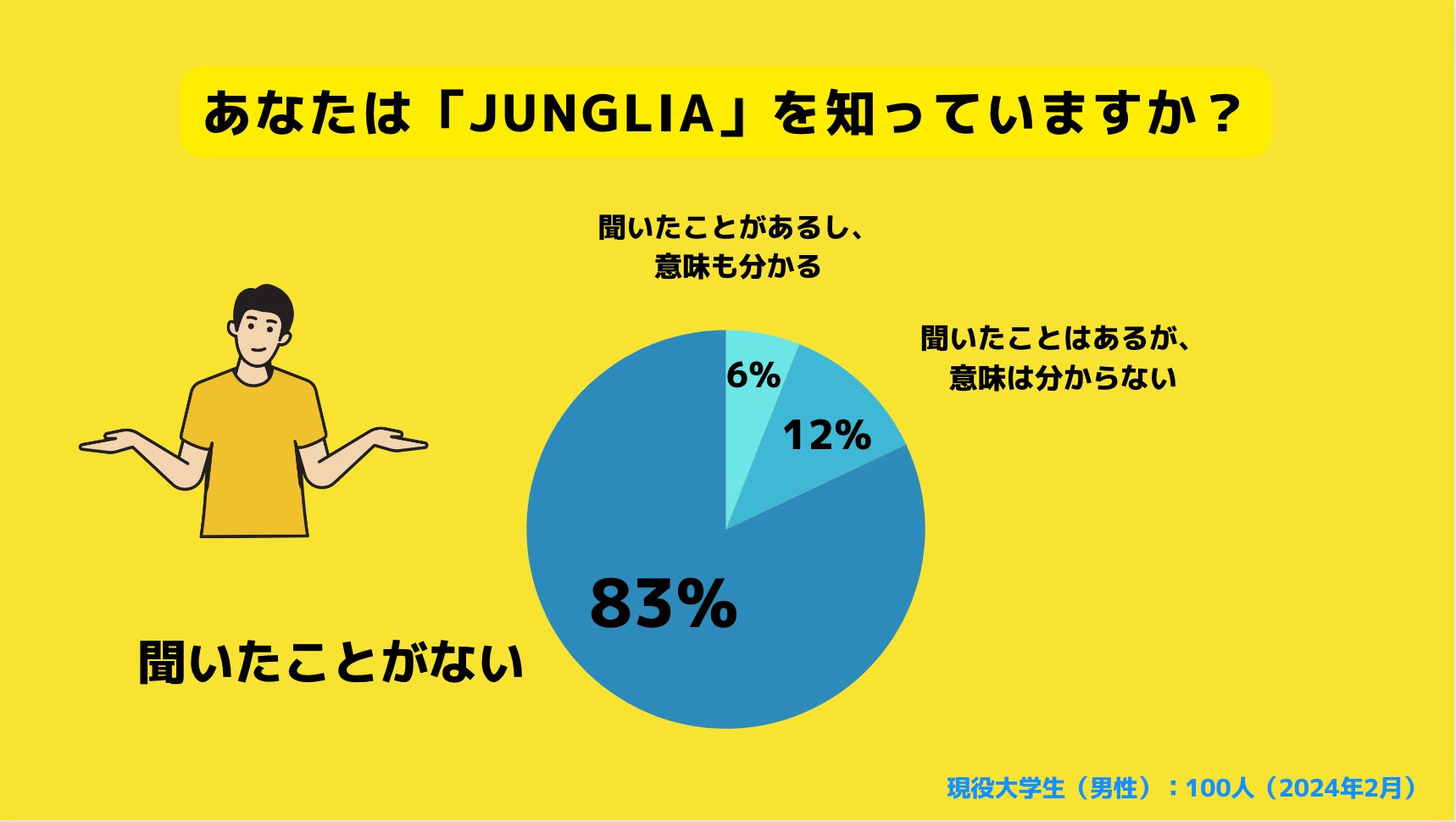 聞いたことがあり意味もわかる学生はわずか6%に止まり、現状の「JUNGLIA」の認知度はまだ低いことがわかりました。