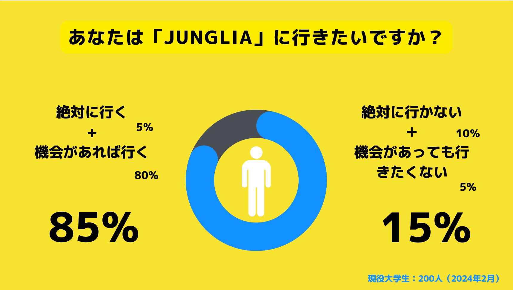 ■大学生の85%が「JUNGLIAに行く」と回答。
