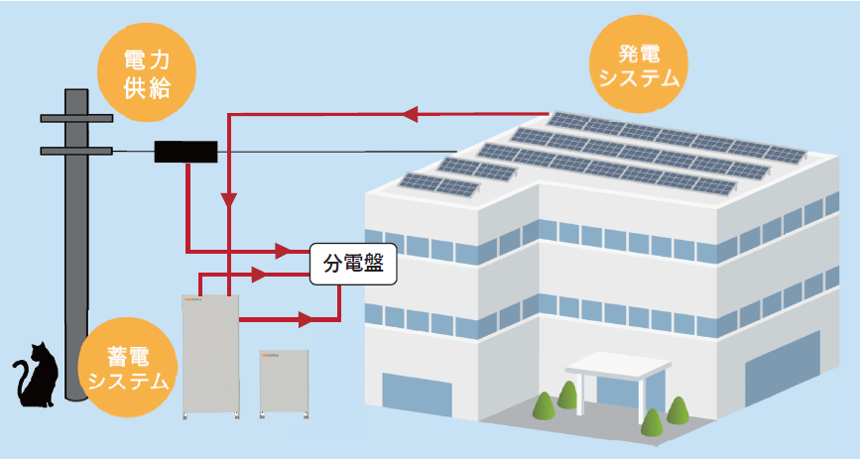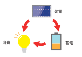 太陽光で発電した電気を蓄電池に蓄え、エコで経済的な自家消費を実現します。安価な夜間電力を蓄電池に溜めて昼間に使うことも可能です。