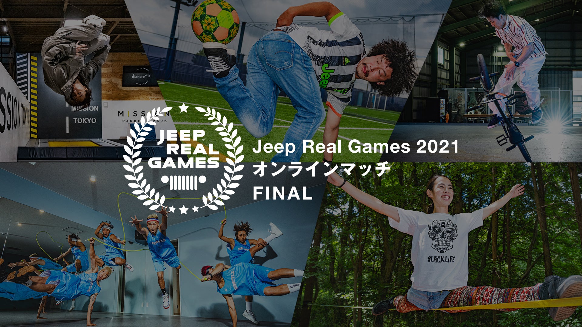 FCAジャパン株式会社(本社:東京都港区、社長:ポンタス・ヘグストロム)は、一昨年より「Jeep Real Games(ジープ リアル ゲームス )」と称して、Jeepの持つ「自由、冒険、本物、情熱」とアクションスポーツの自由・冒険、アスリートの持つ本物・情熱をマッチングさせたプロモーションの一貫として、アクションスポーツをメインにスタートいたしました。競技はパルクール(フリースタイル)、BMX(フラットランド)、ダブルダッチ、スラックライン、フリースタイルフットボールの5種目となります。2021年度はオンラインマッチを開催し、総勢約250名ものアスリートたちにエントリーいただき、各競技を代表するJeep Real Gamesメンターたちやシーンを先導する人たちが審査員を務め、参加者のパフォーマンスをジャッジしています。 入賞者には賞金とJeepオリジナル賞品を贈呈。