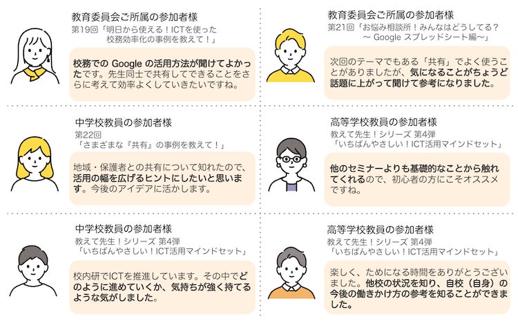 皆様から寄せられた学校のICT活用についての質問やお困りごと、事例共有をテーマに、講師や参加者の皆様でざっくばらんに情報をシェアするコミュニティです。