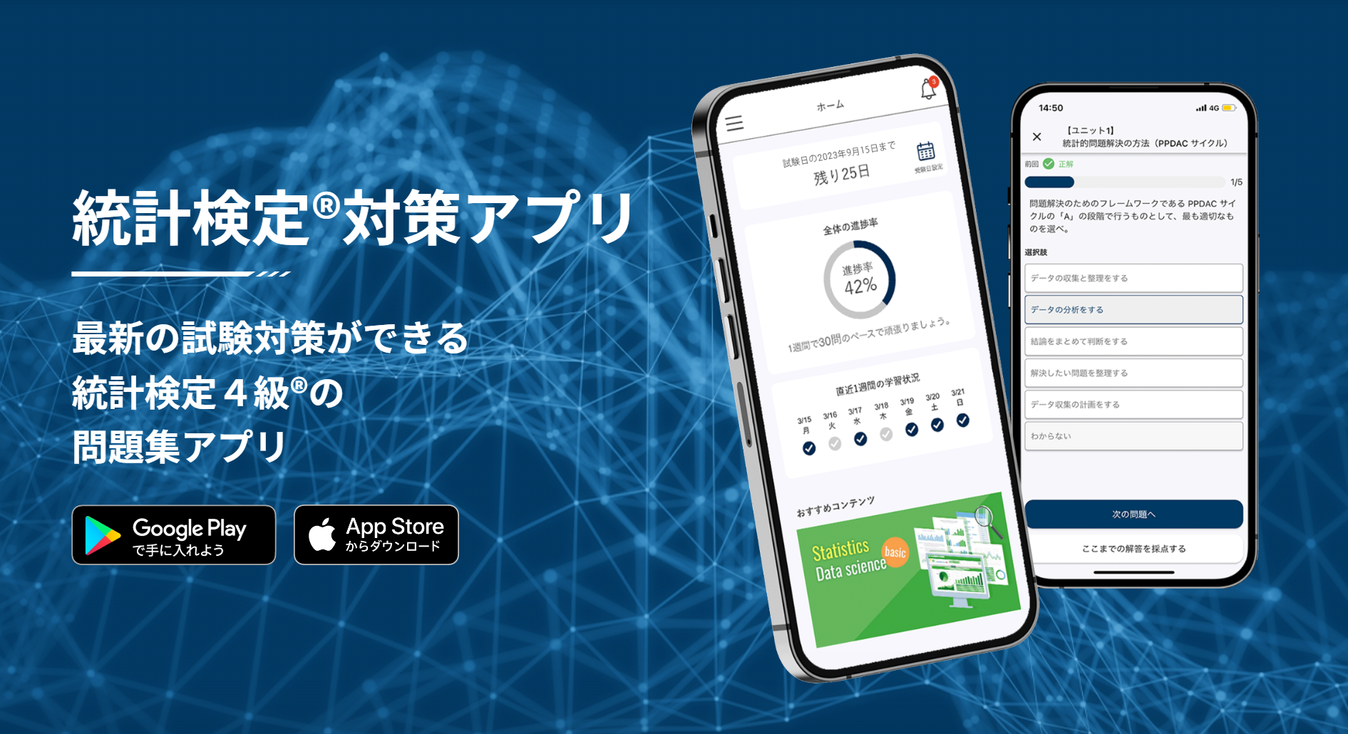 統計検定4級®︎対策アプリをリリース、厳選した122問を収録