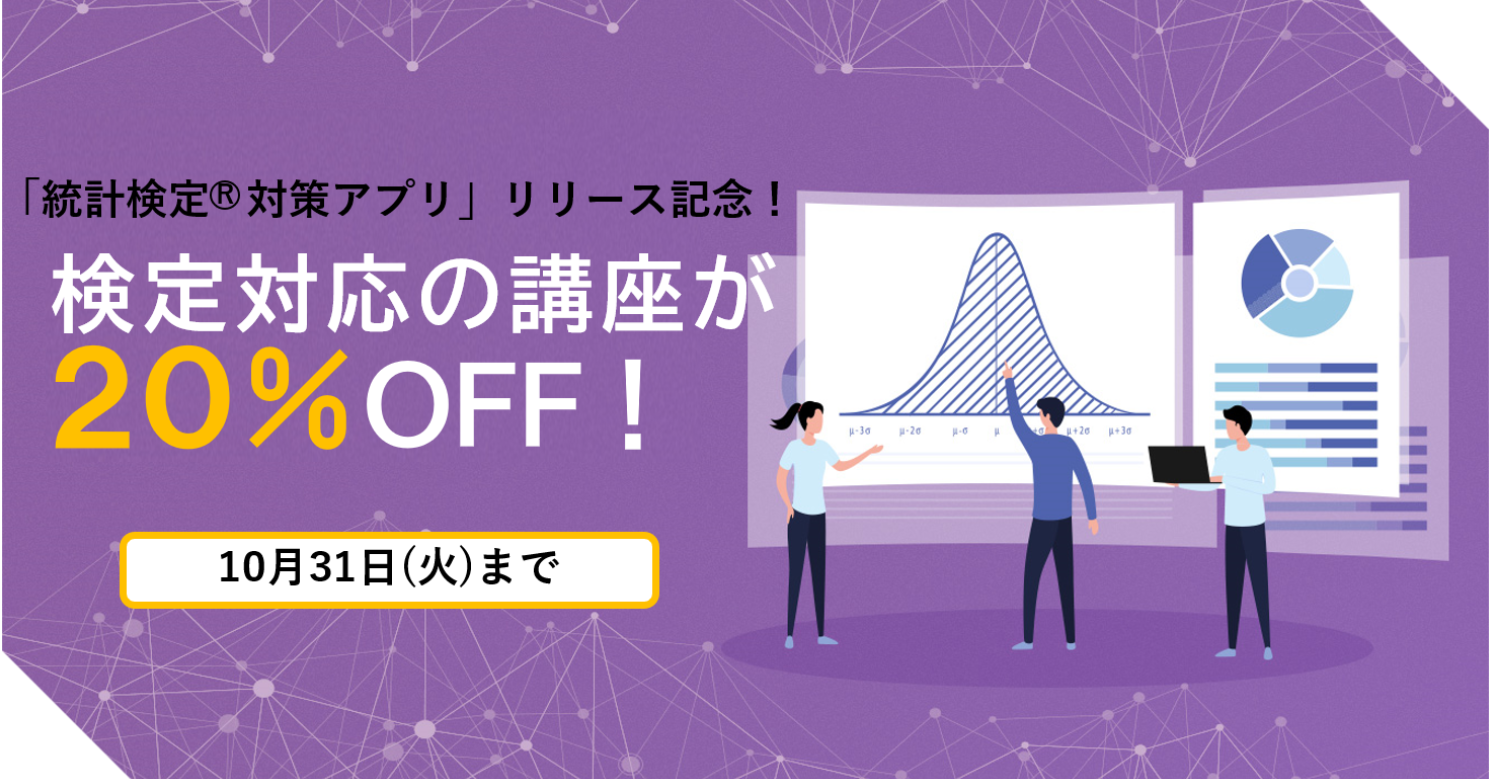 ~アプリリリースを記念し統計検定®︎各級対応講座20%off実施中~