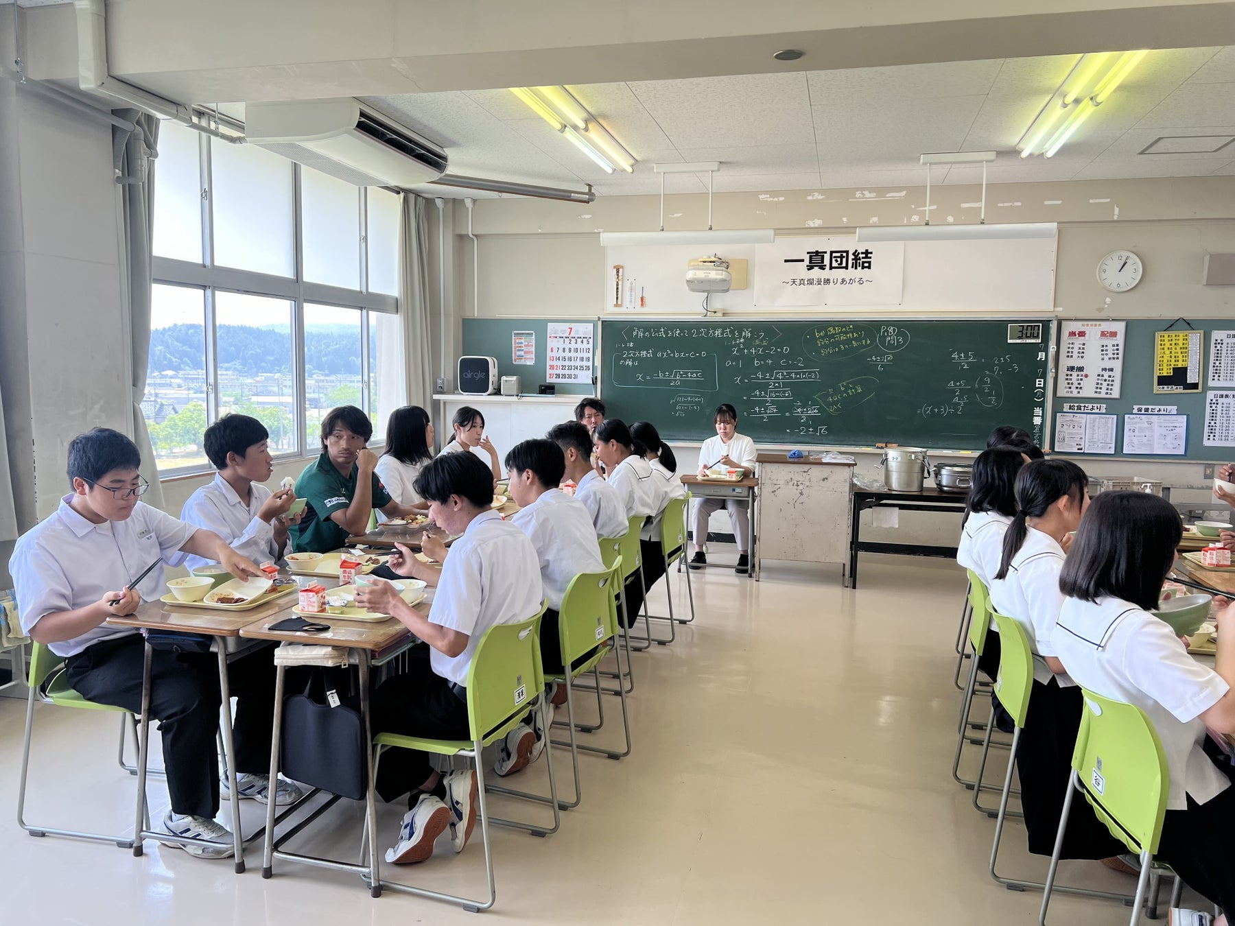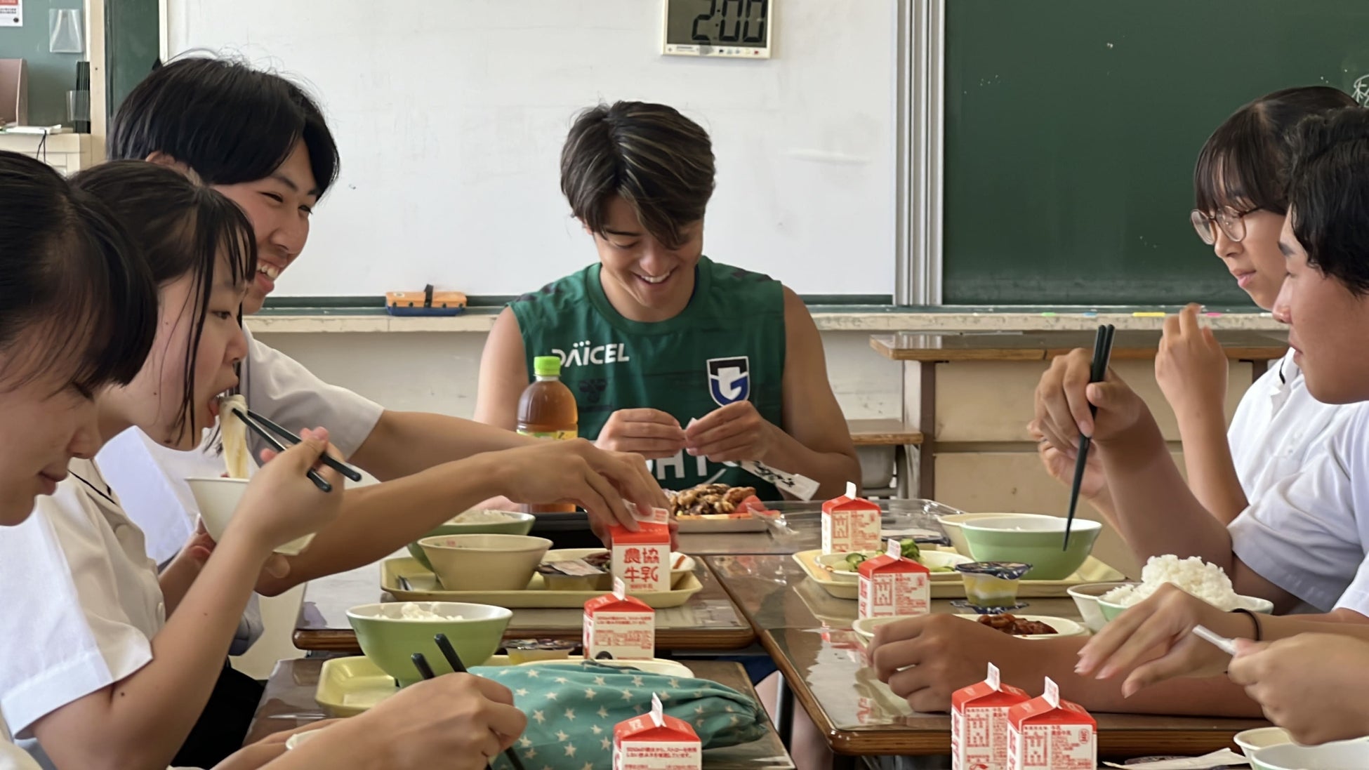 ふれあいサッカーの後は、選手が各教室に分かれ生徒の皆さんと昼食の時間を共に過ごし、選手から生徒の皆さんに伝えたいことや、震災当時のことなど色々な話をさせていただきました。