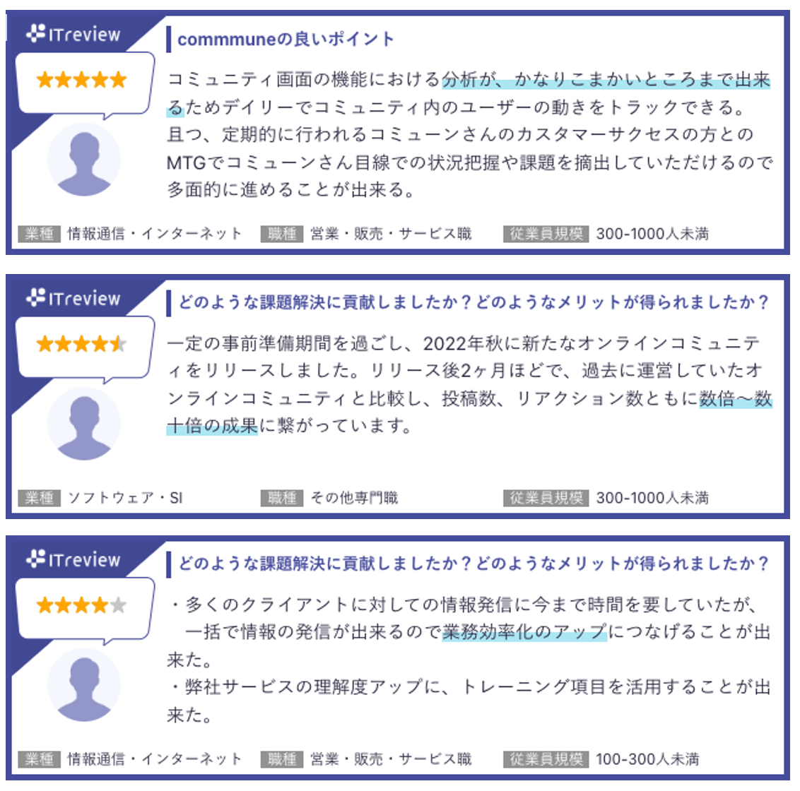企業とユーザーが融け合うコミュニティサクセスプラットフォーム「commmune(コミューン)」と、効率的なカスタマーサクセスのためのアクション基盤「SuccessHub(サクセスハブ)」を提供するコミューン株式会社(本社:東京都品川区、代表取締役CEO:高田優哉)は、アイティクラウド株式会社(本社:東京都港区、代表取締役社長:黒野 源太)が主催する「ITreview Grid Award 2023 Winter」において、「commmune」がユーザー満足度・認知度ともに高いサービスであると評価されたことをお知らせいたします。