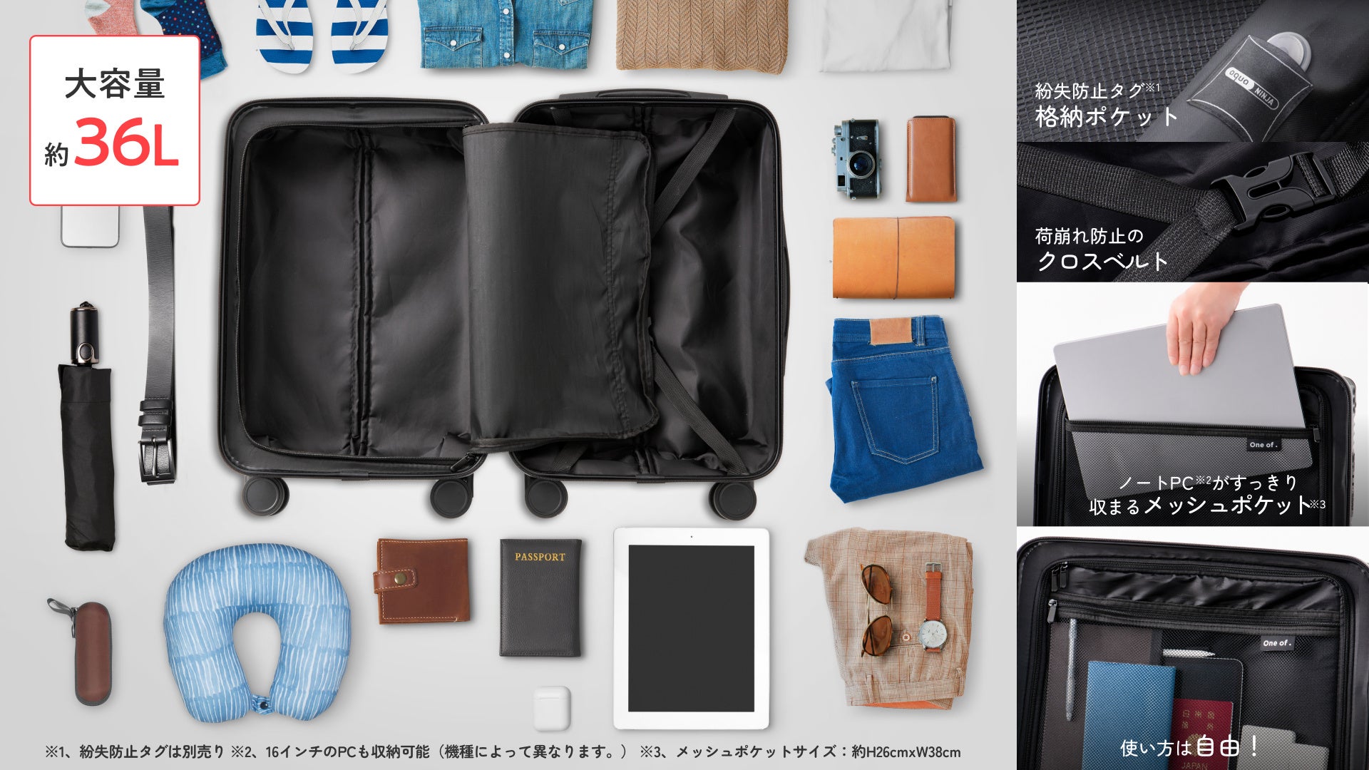機能面もデザインも優れながら、お値段は収納袋付きで¥8980円〜とリーズナブル。スーツケースブランドのファストファッションを目指す「One of.」だからこそ実現できた、驚きの低価格と高いクオリティをぜひご体感ください。